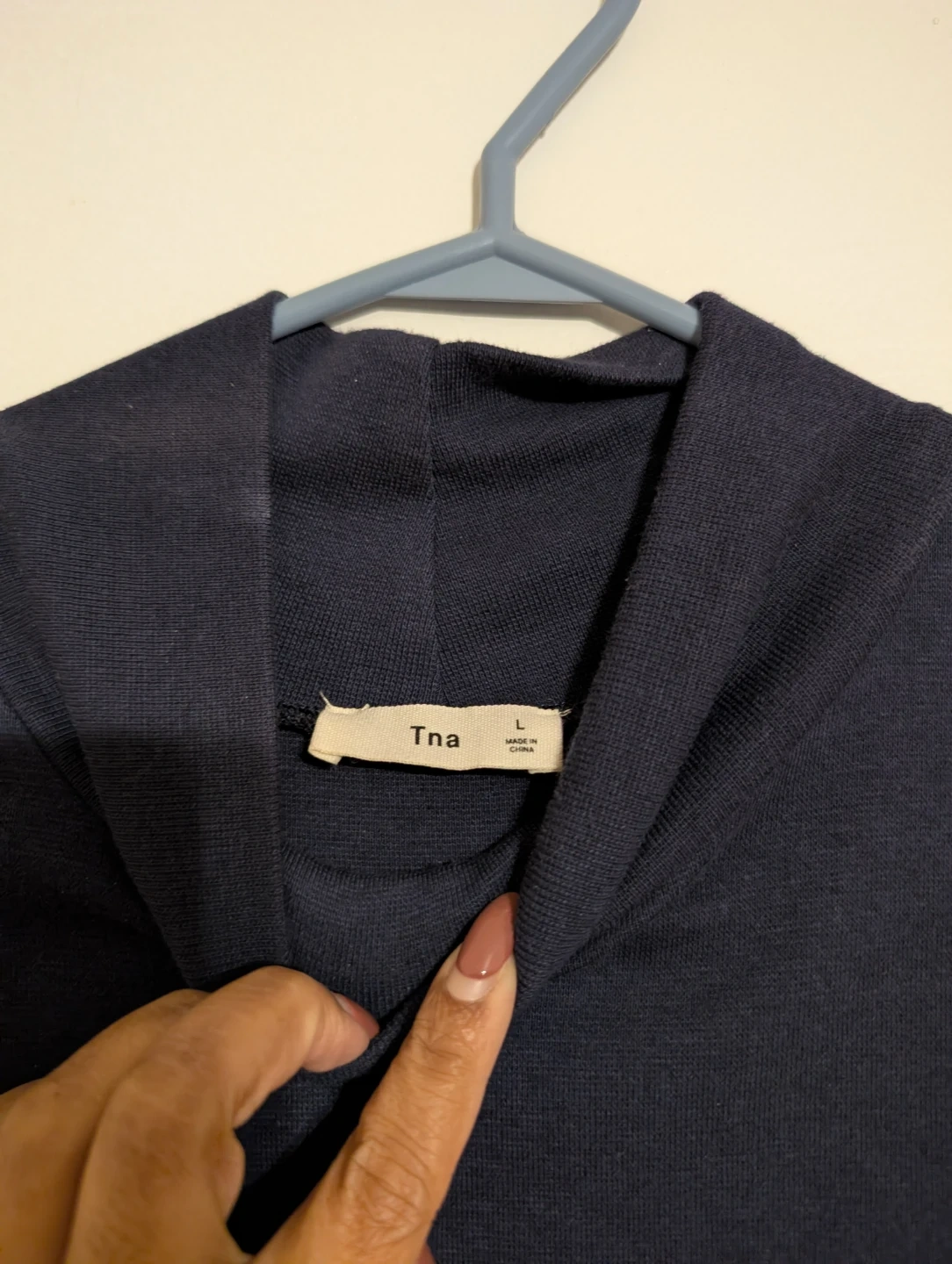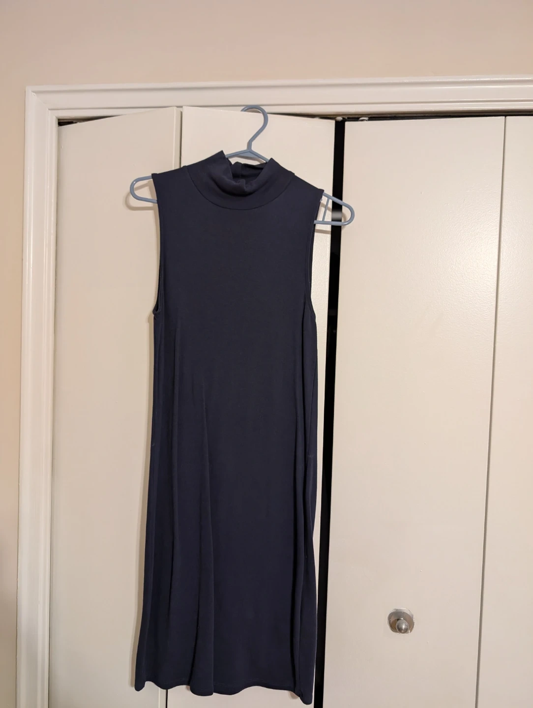 Navy Tna sleeveless mock neck dress. Size large. This simple dress is great for layering or wearing on its own.