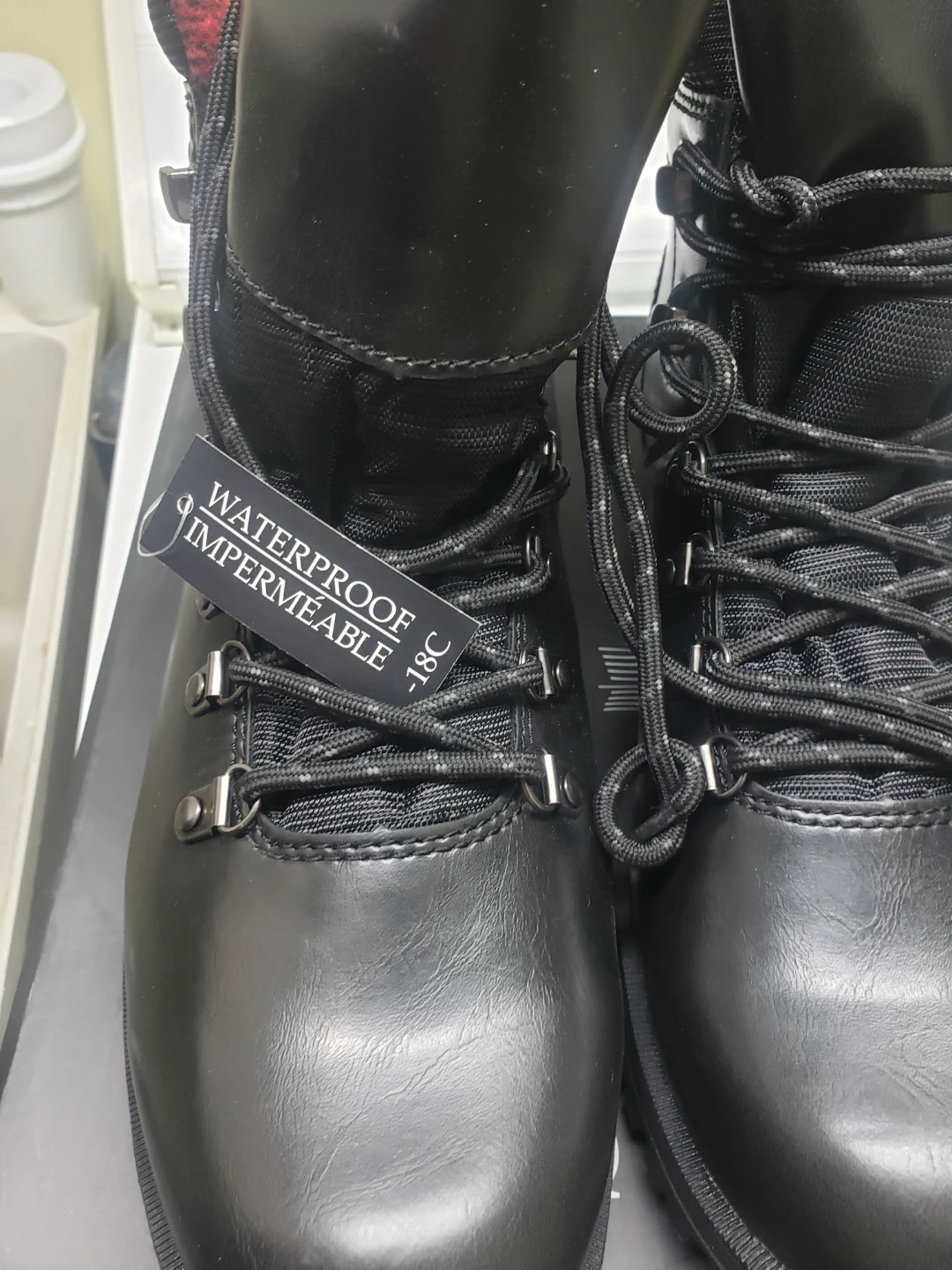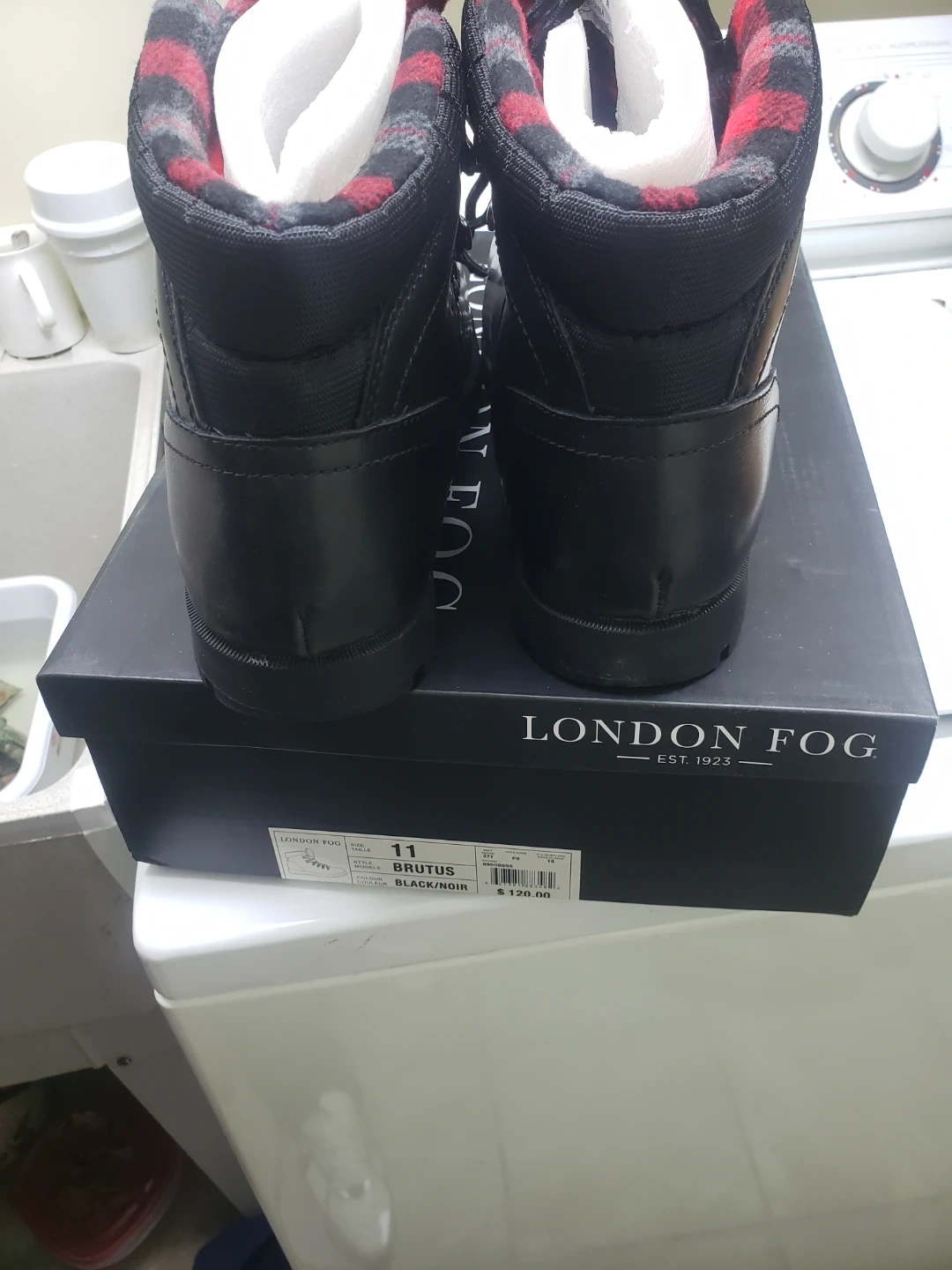 Selling a pair of London Fog Brutus Winter boots in black, size 11! These boots are waterproof and come with the original box. The inside lining features a red and black plaid design. Originally bought for $120