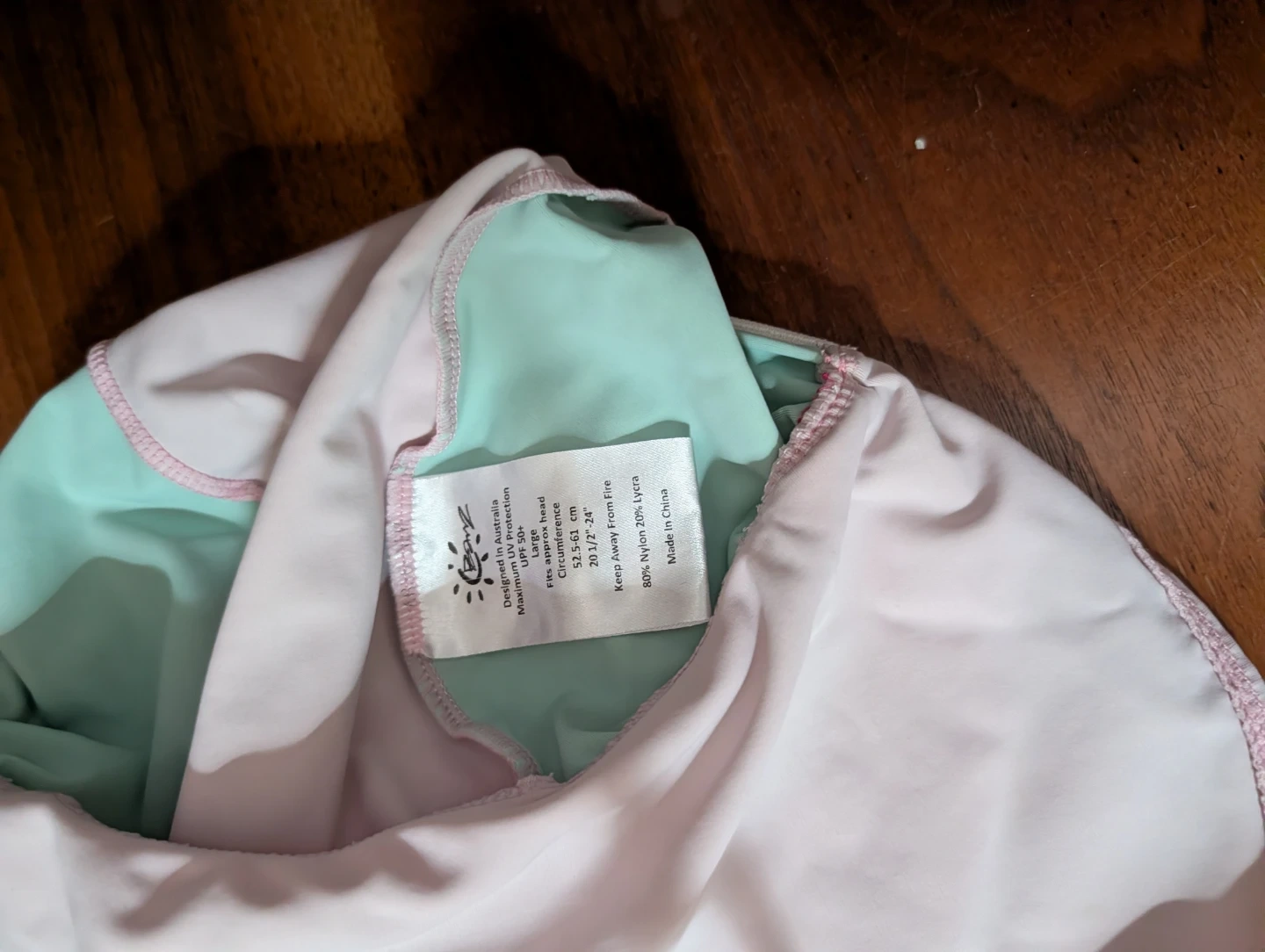 Banz UV sun hat with neck protection. Circumference 20-24". Made of 80% Nylon, 20% Lycra. Excellent for keeping kids sun-safe!