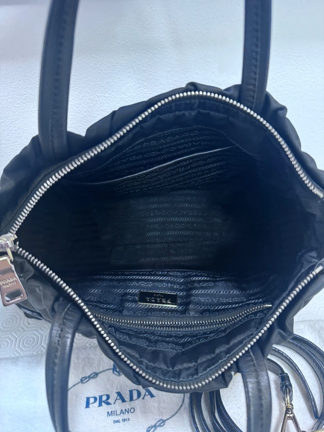 Prada Black Nylon Gathered Tote Bag