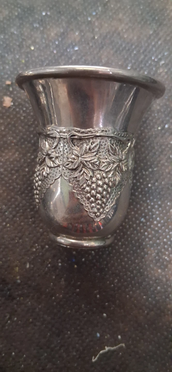Set of 4 Vintage Silver Tone Metal Cups with Grapevine Design