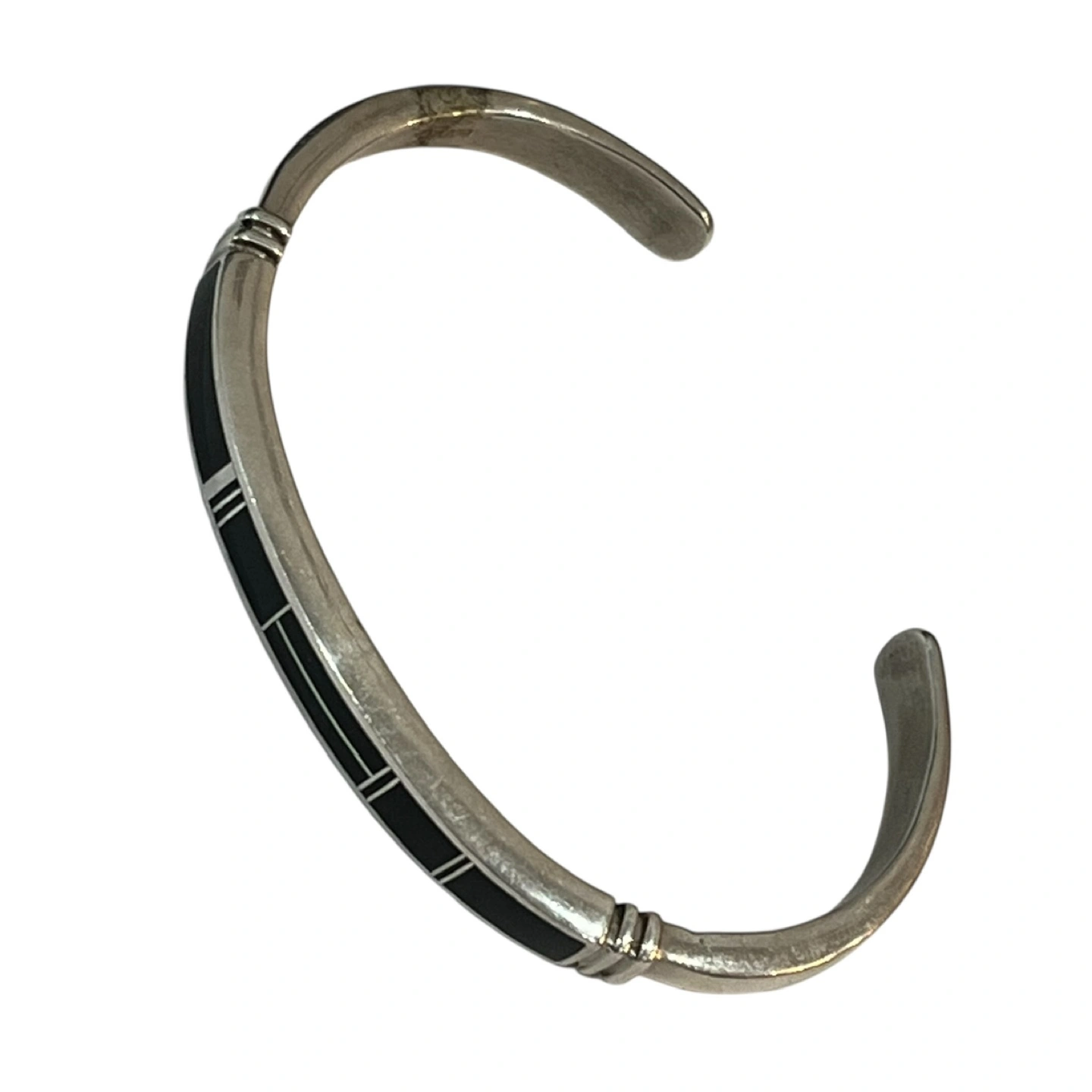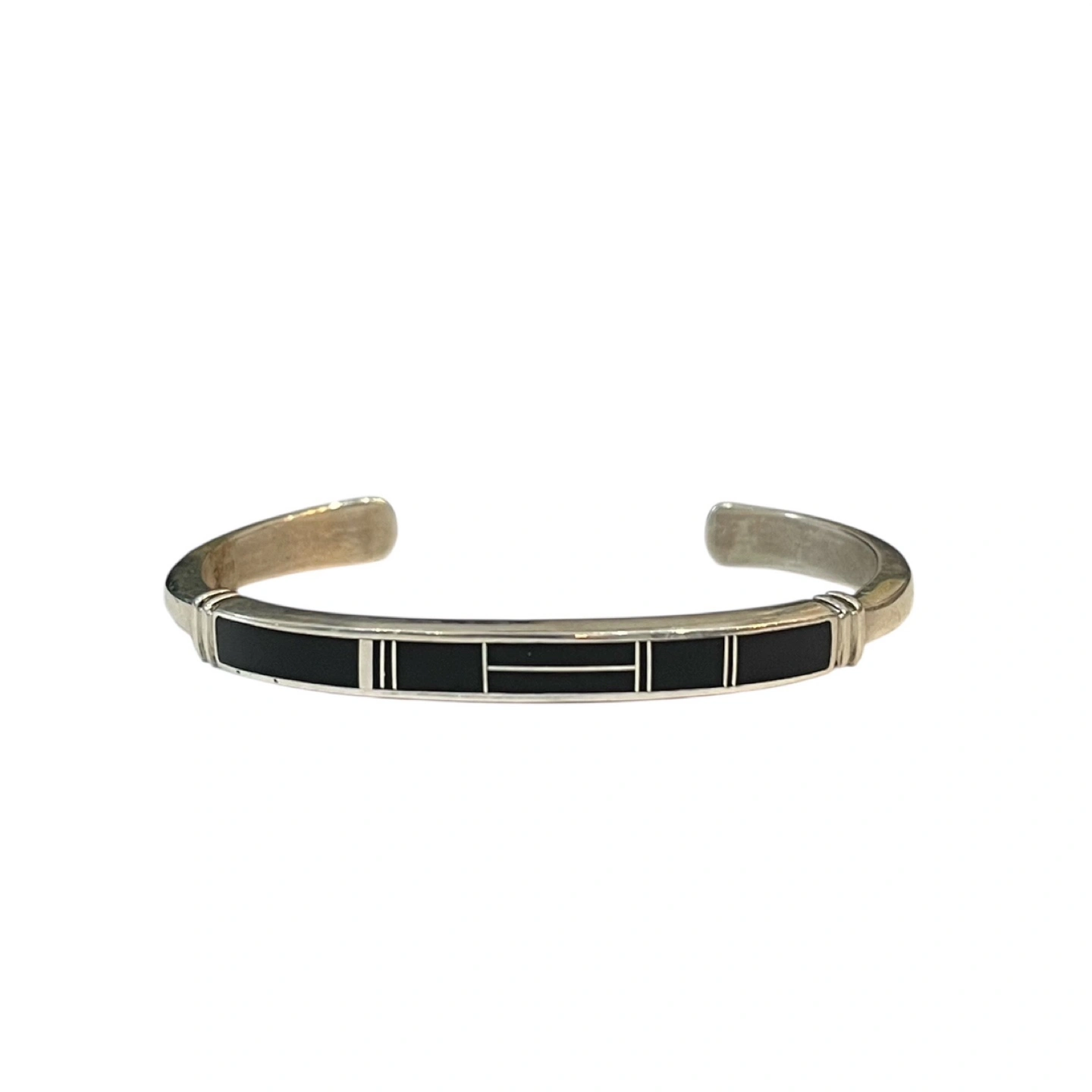 Indigenous Sterling Silver Bracelet with Inlaid Onyx Stone