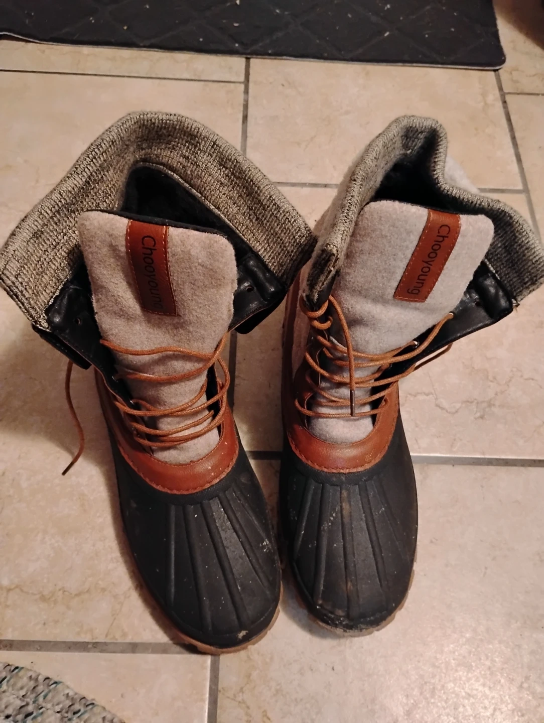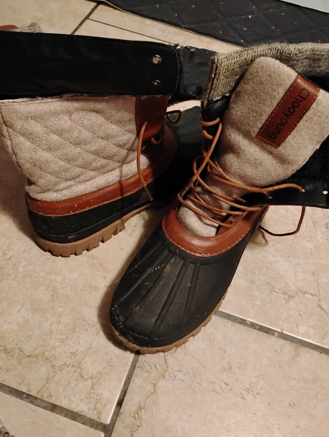 Chooyoung UNISEX winter boots with a cosy fleece lining. Features a lace-up front and a durable rubber sole. Great for keeping your feet warm and dry during the cold weather!