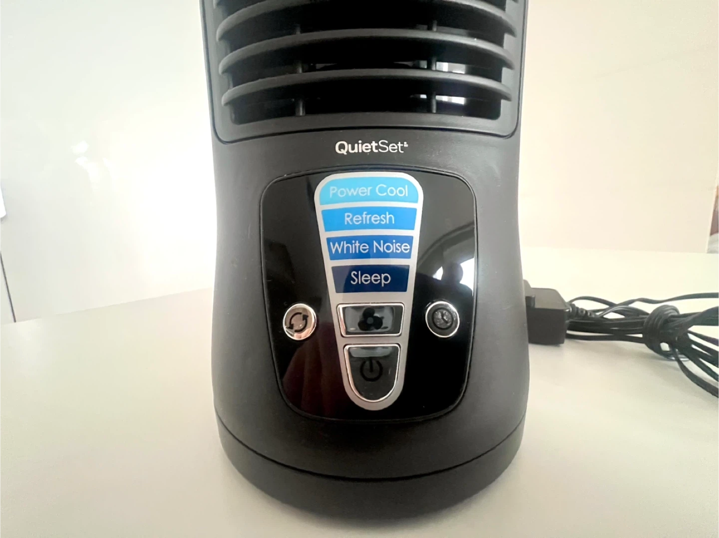 Bedside cooling fan, quiet, multiple settings