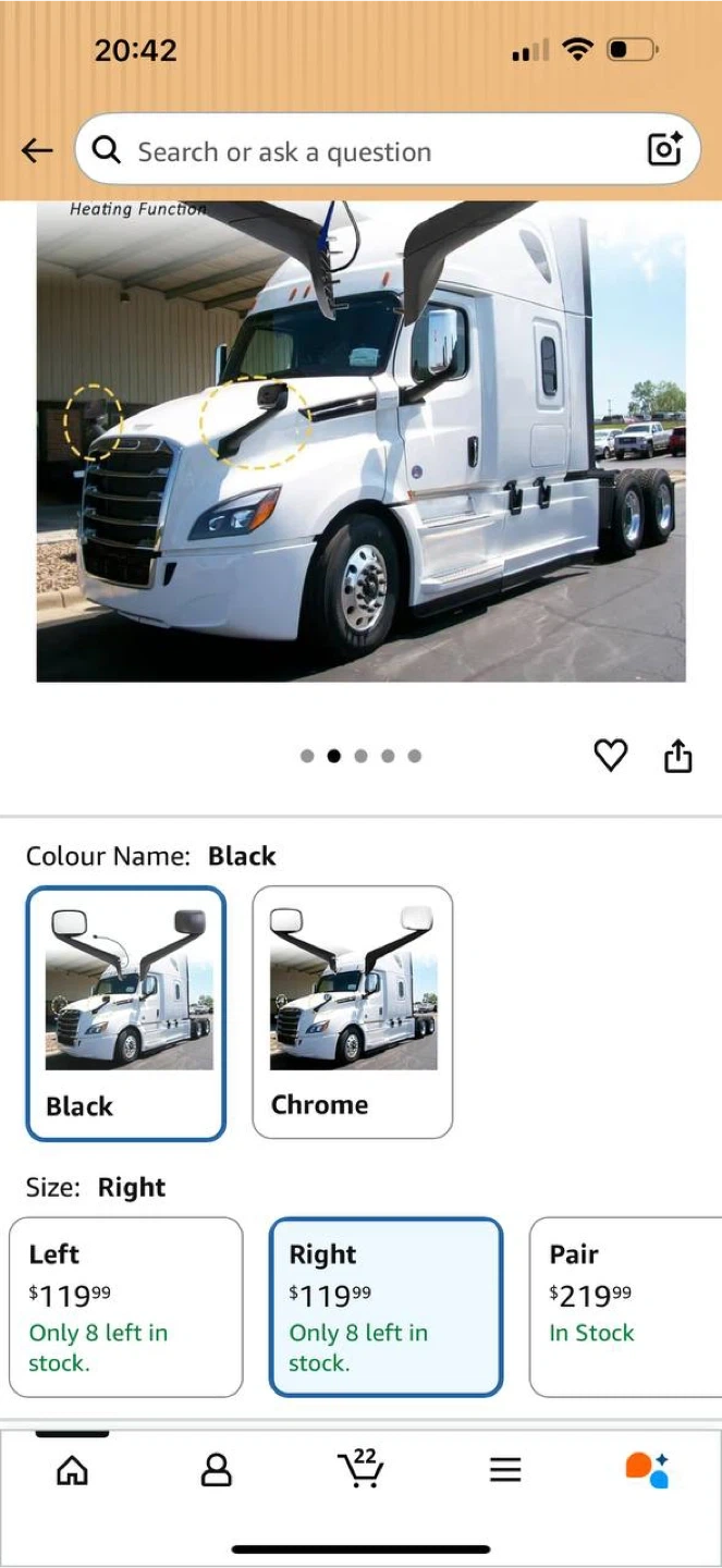 π Right Side Hood Mirror Assembly for Freightliner Cascadia 2018+ β NEW π