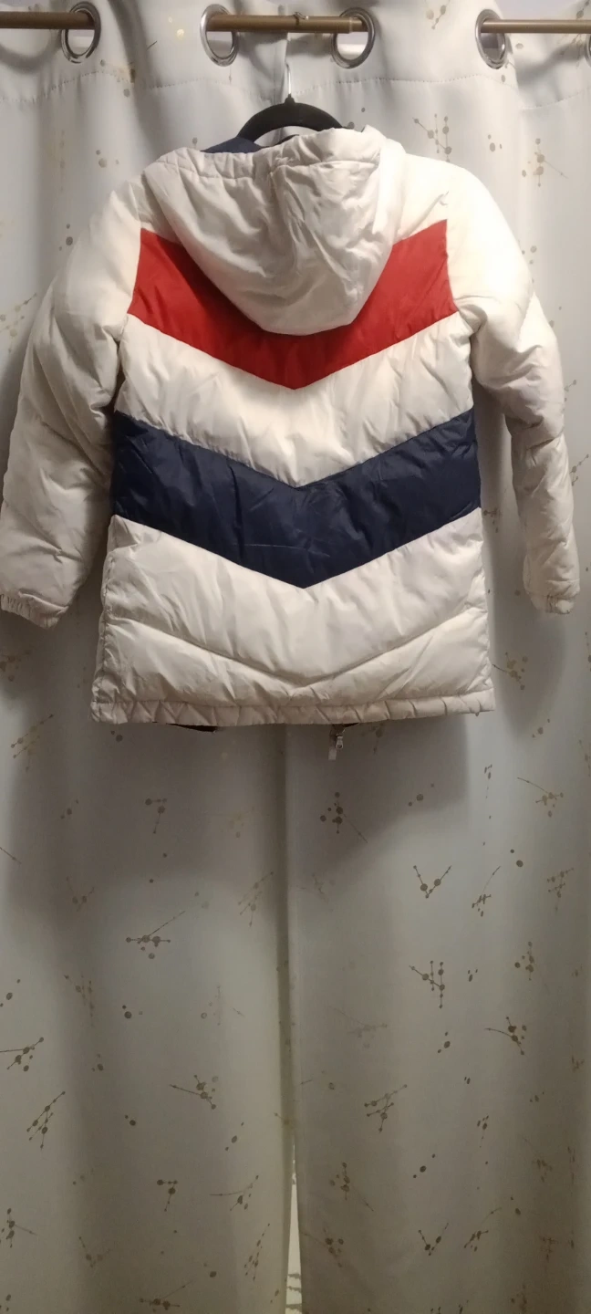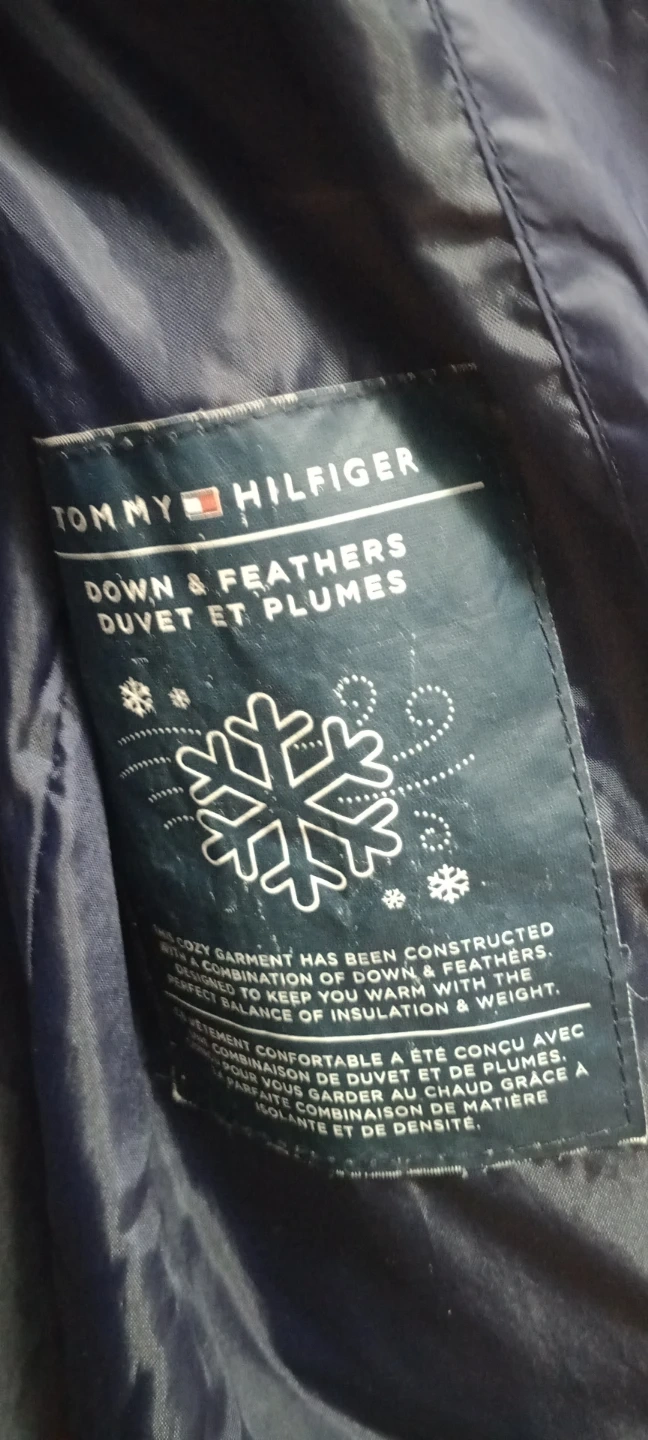 Tommy Hilfiger puffer jacket with down and feather fill. It's a size medium (8-10) with a colour-block design. Keeps you warm with a good balance of insulation and weight!