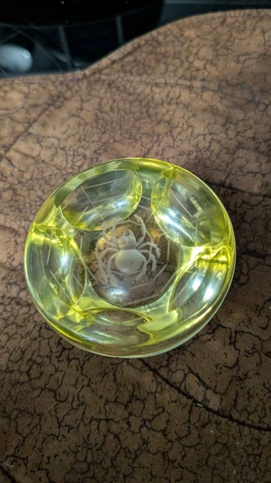 Vintage Webb Corbett Uranium Glass Spider Paperweight