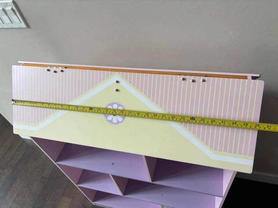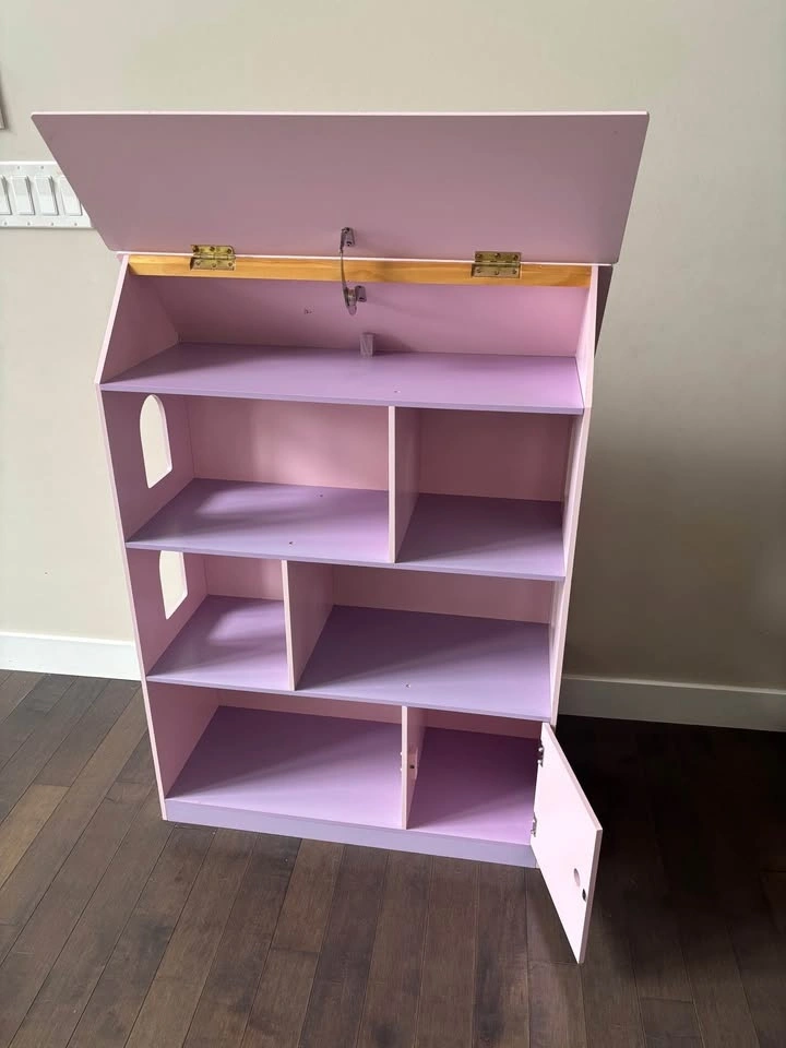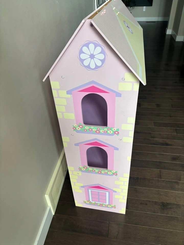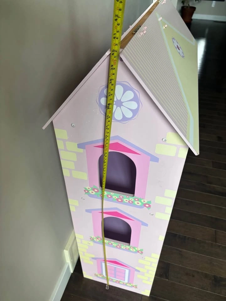 For pick up in Mahogany. There are a few marks & spots where the paint is chipped/damaged, but overall it’s in very good used condition. It’s approximately 40 inches tall x 30.25 inches wide x 13 inches deep (going by the roof).
