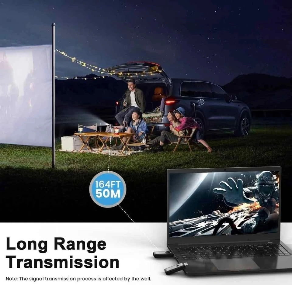 With 2.4G/5G dual-frequency transmission, enjoy stable connectivity up to 50 meters away. Whether for meetings or leisure, experience uninterrupted audiovisual freedom. (Note: Transmission distance and speed may be affected when the product passes through walls or encounters obstacles.)
