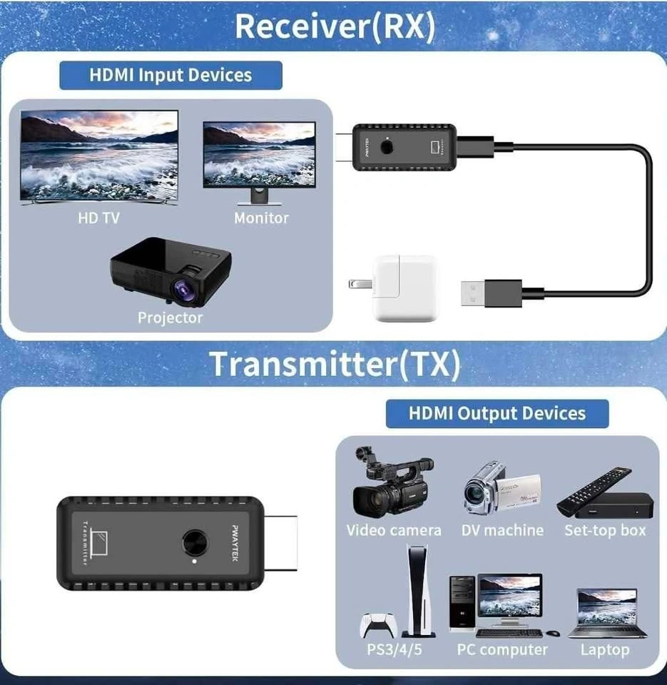 Wireless HDMI Transmitter and Receiver with Adapter 4K
