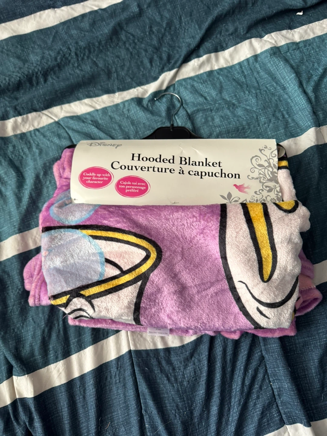 Super soft and cozy hooded blanket featuring a character design. Made from 100% polyester, it's perfect for cuddling up. Measures 40 x 50 inches.