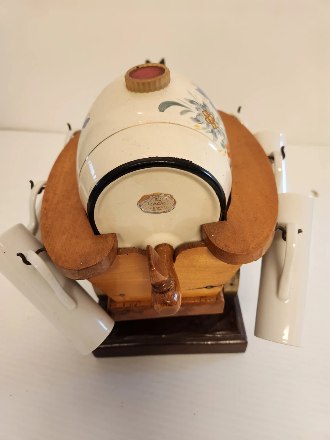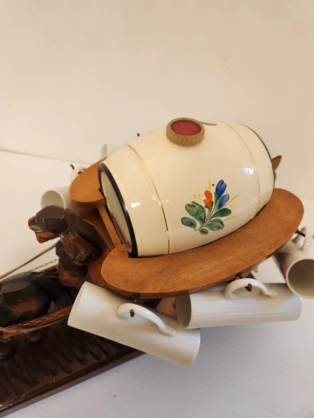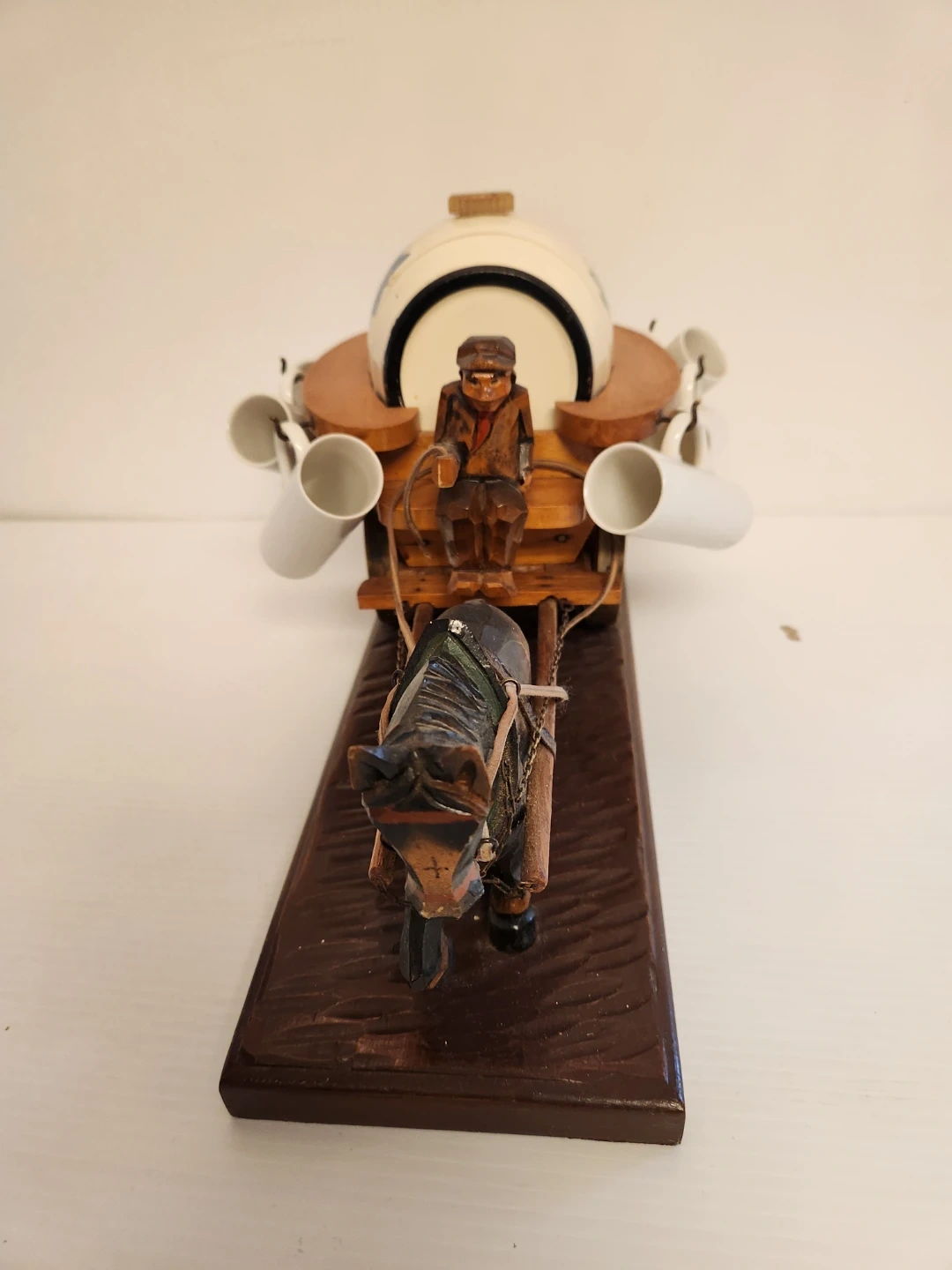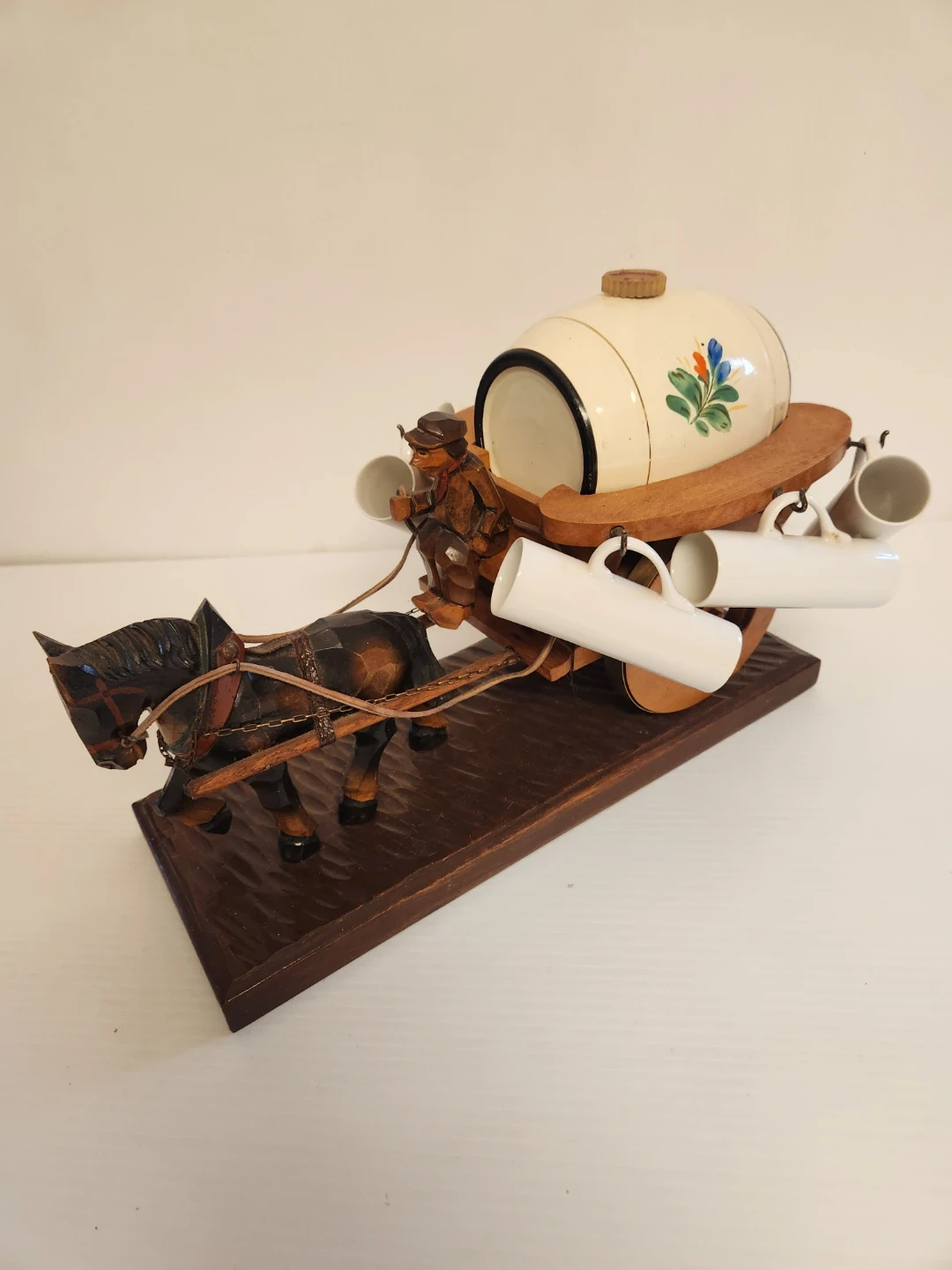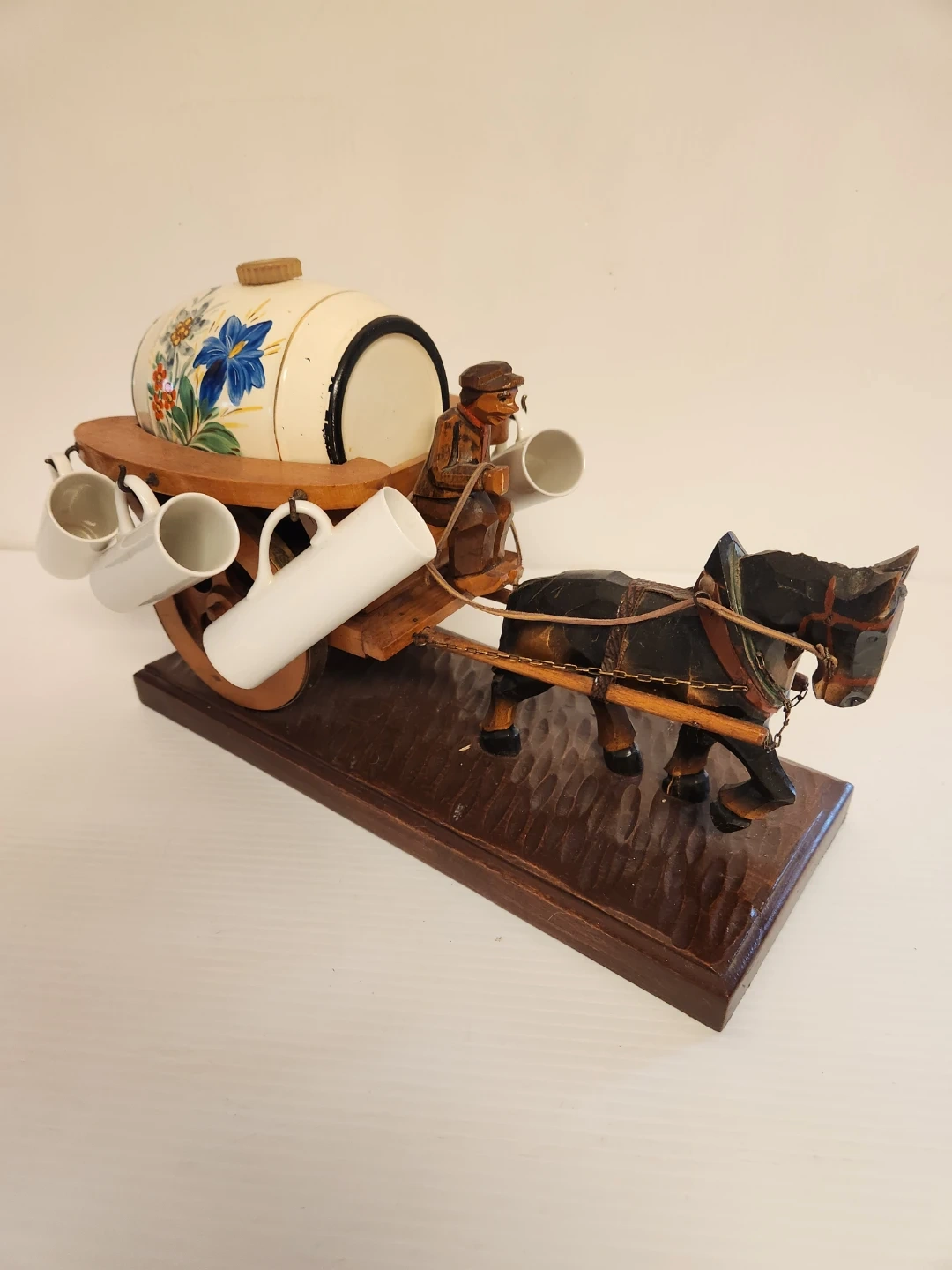 Vintage Horse and Cart Ceramic Barrel Set with Cups