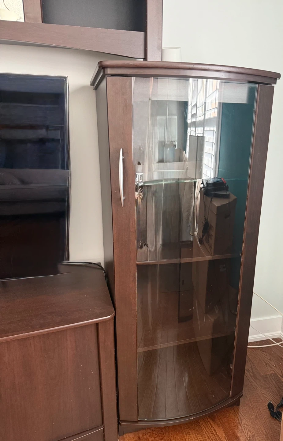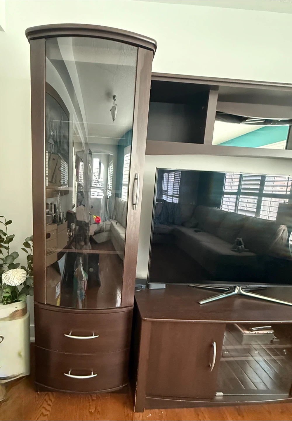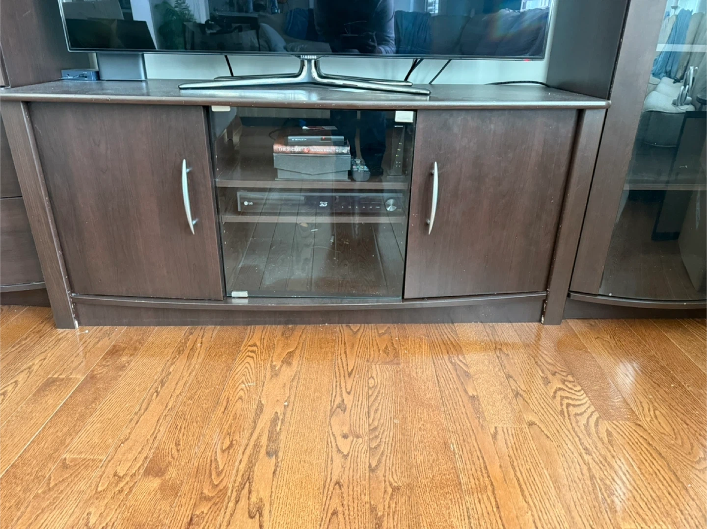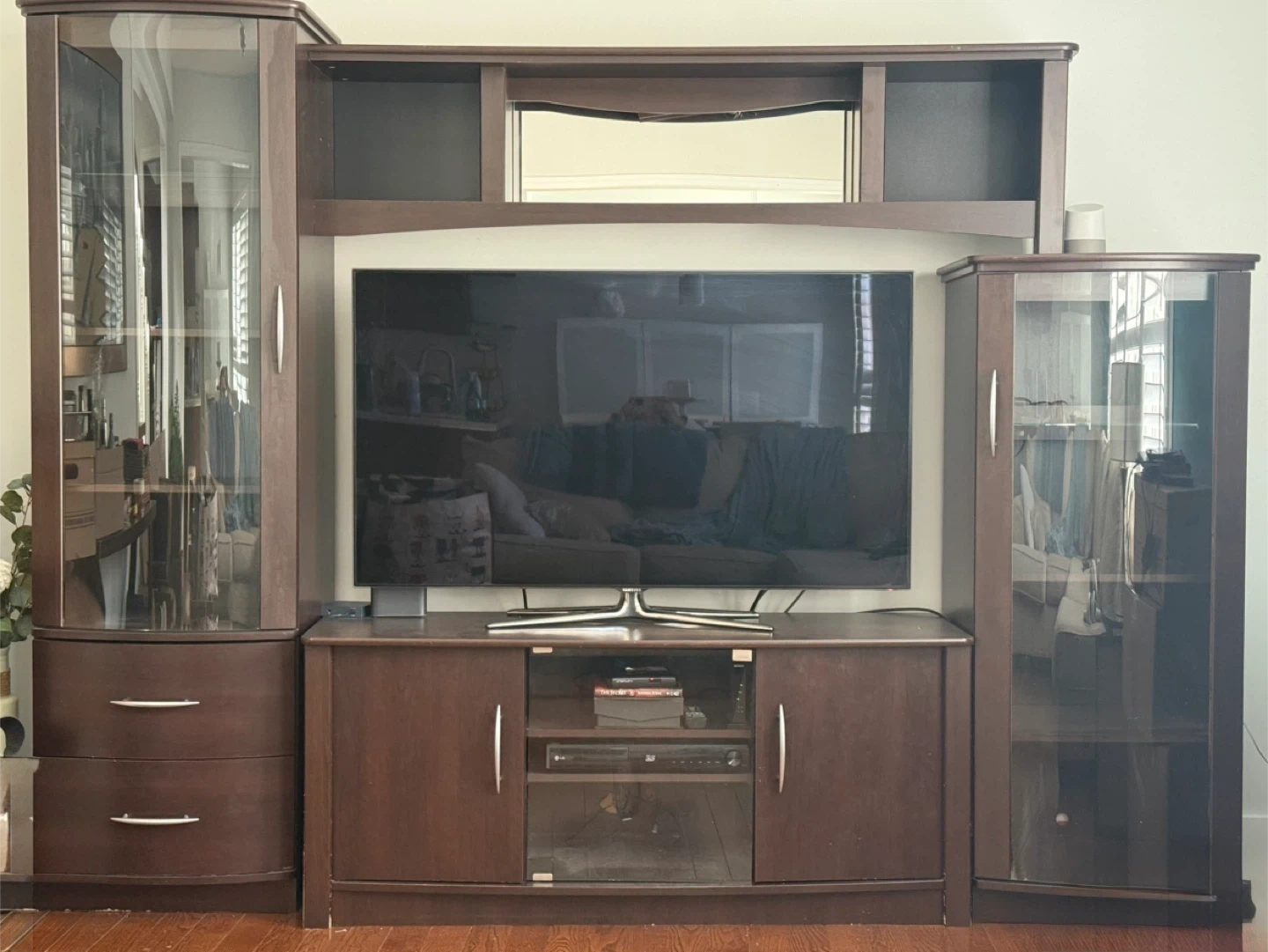 MOVING SALE - Dark Wood Entertainment Unit with Glass Cabinets
