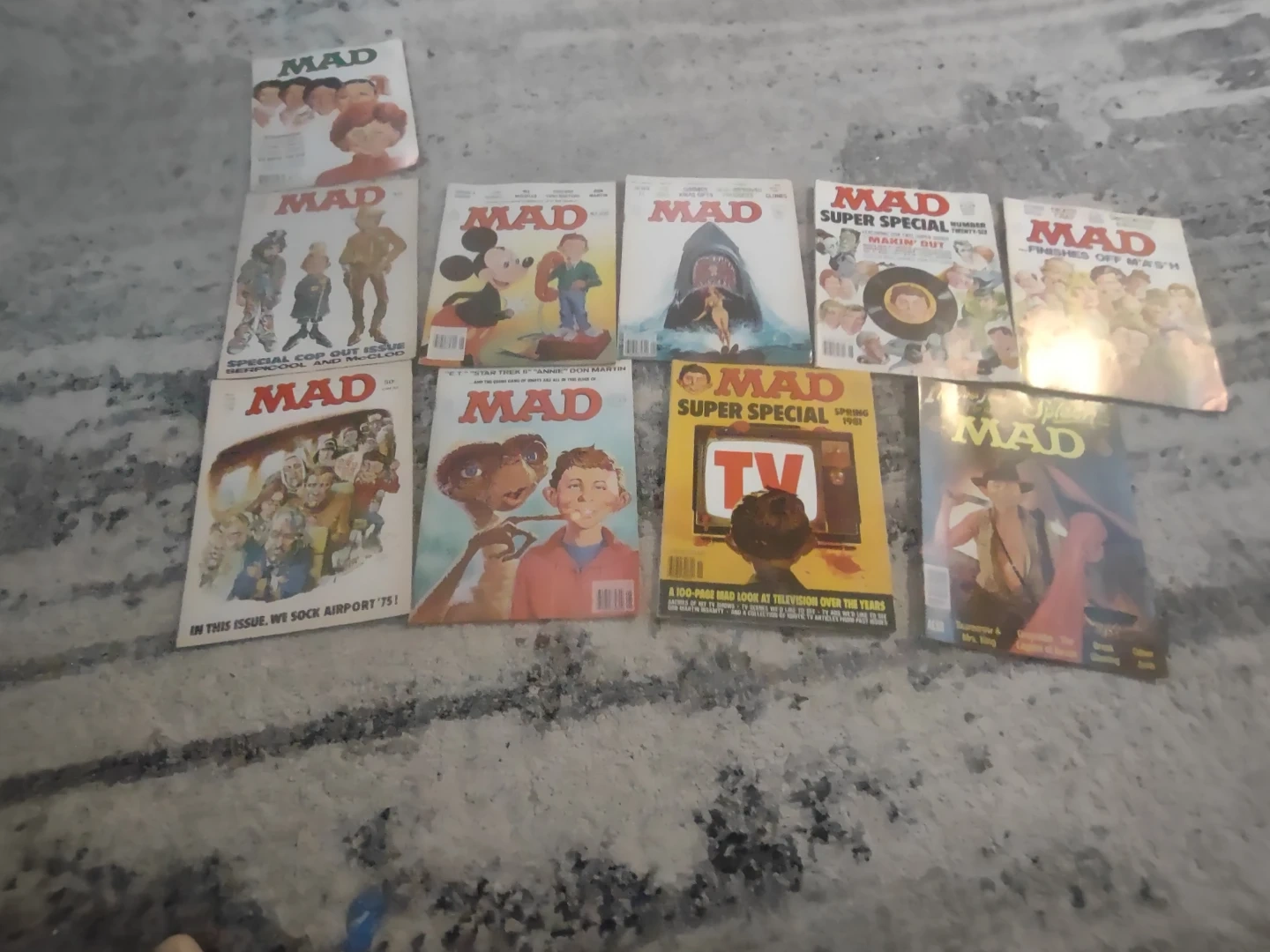 A collection of MAD Super Special and regular MAD magazines. Features various classic MAD content and artwork. Perfect for collectors of satire and humour publications.