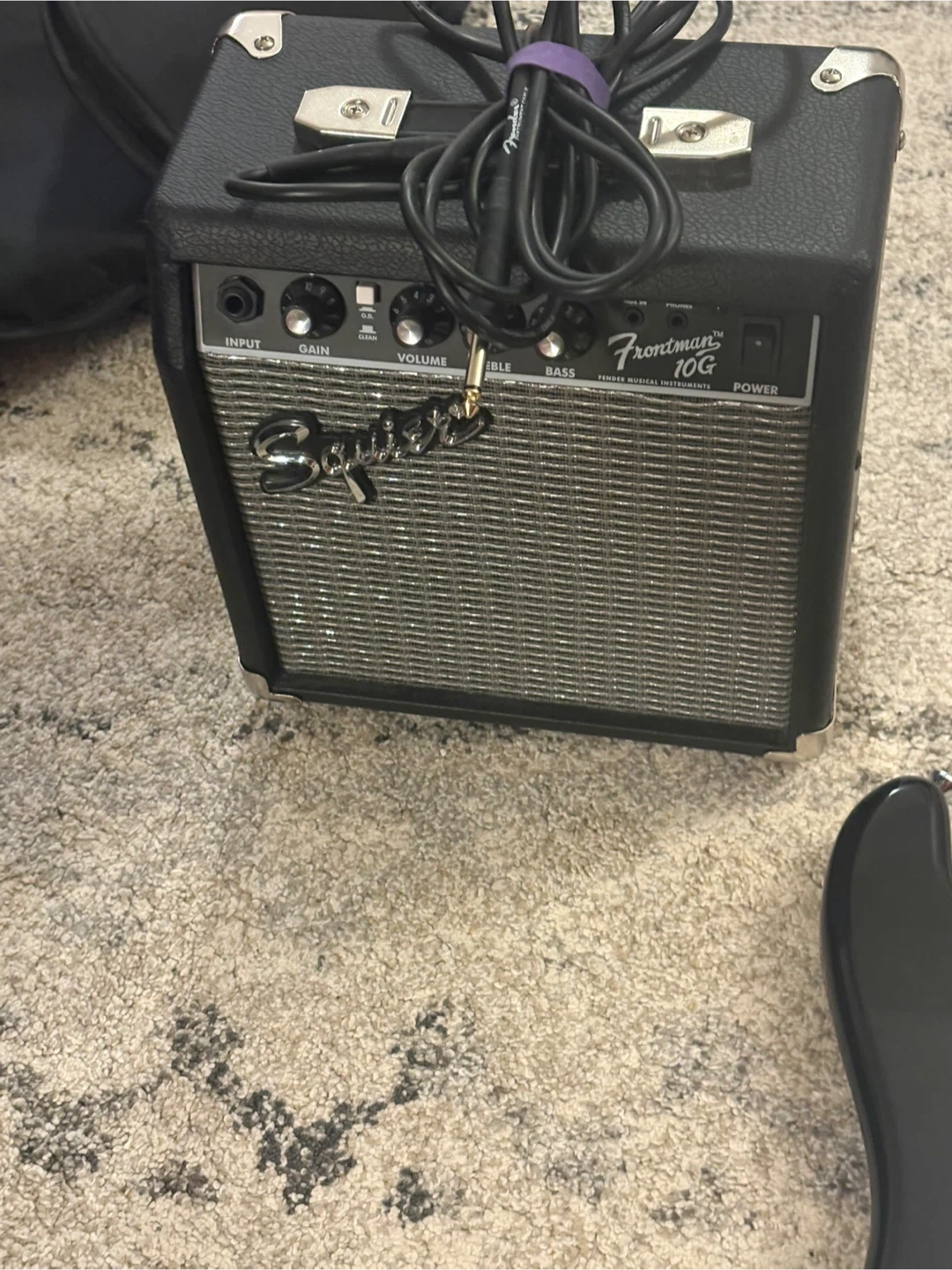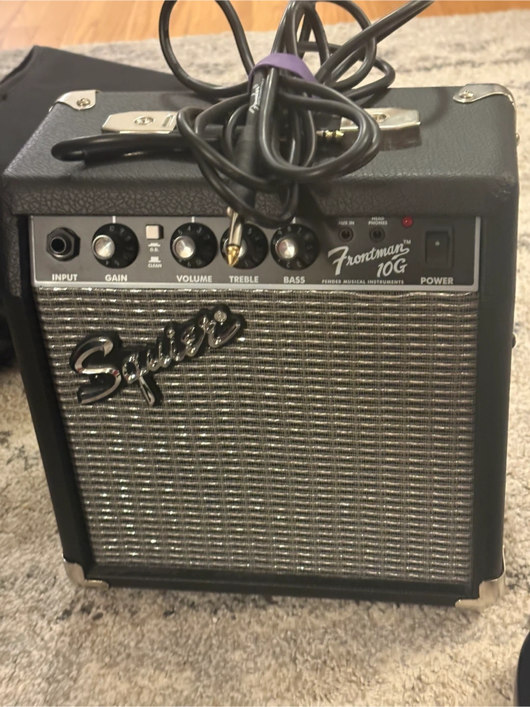 Squier Strat Electric Guitar and Fender Frontman 10G Amp