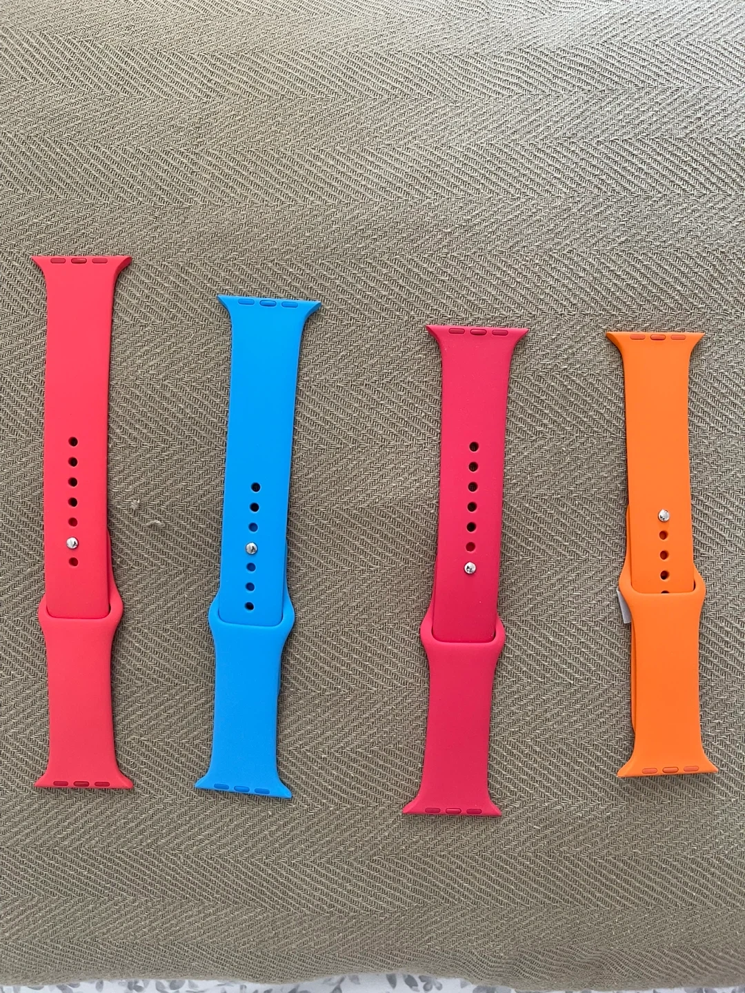 Apple Watch Series 11 with Hermes branding. It's a 45mm titanium case model with WR-50M water resistance, cellular, GPS, and sapphire crystal. Includes four additional bands: orange, blue, pink, and bright pink.