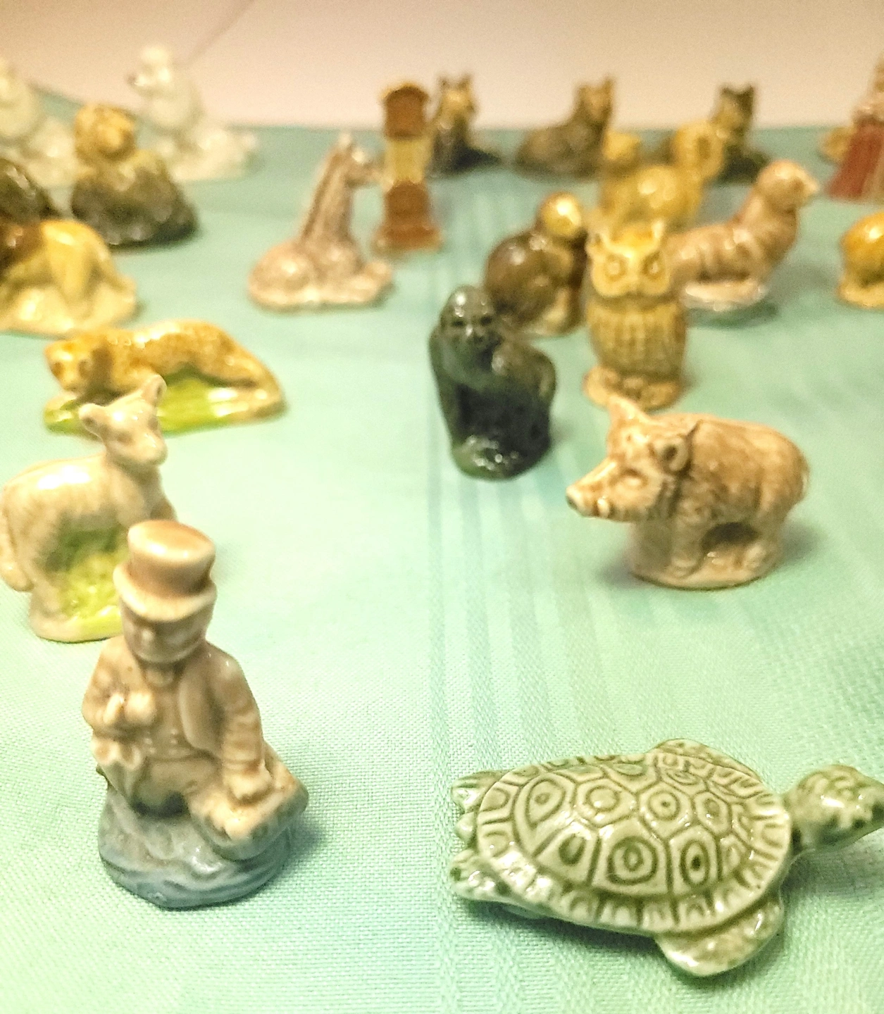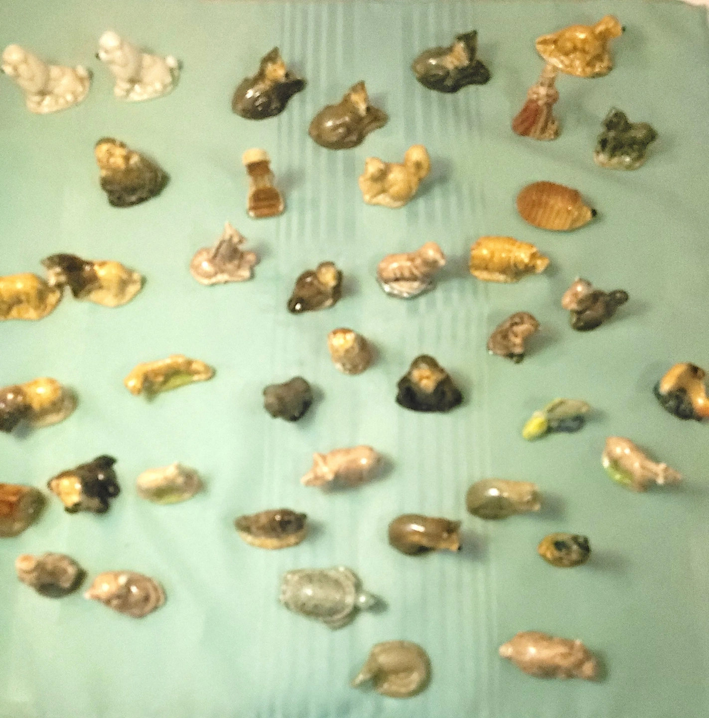 Condition: The pieces are in good vintage condition with a vibrant, glossy glaze. Please note that as indicated in the photos, three or four of the figurines have minor chips on the ears or heads. The remaining 37+ pieces are in great shape. Please refer to the photos for a detailed look at the variety and specific condition of each miniature.