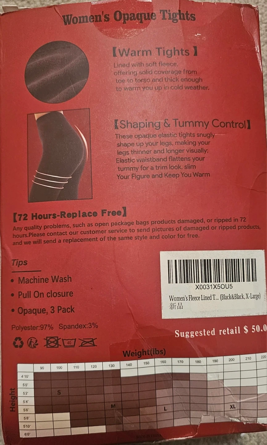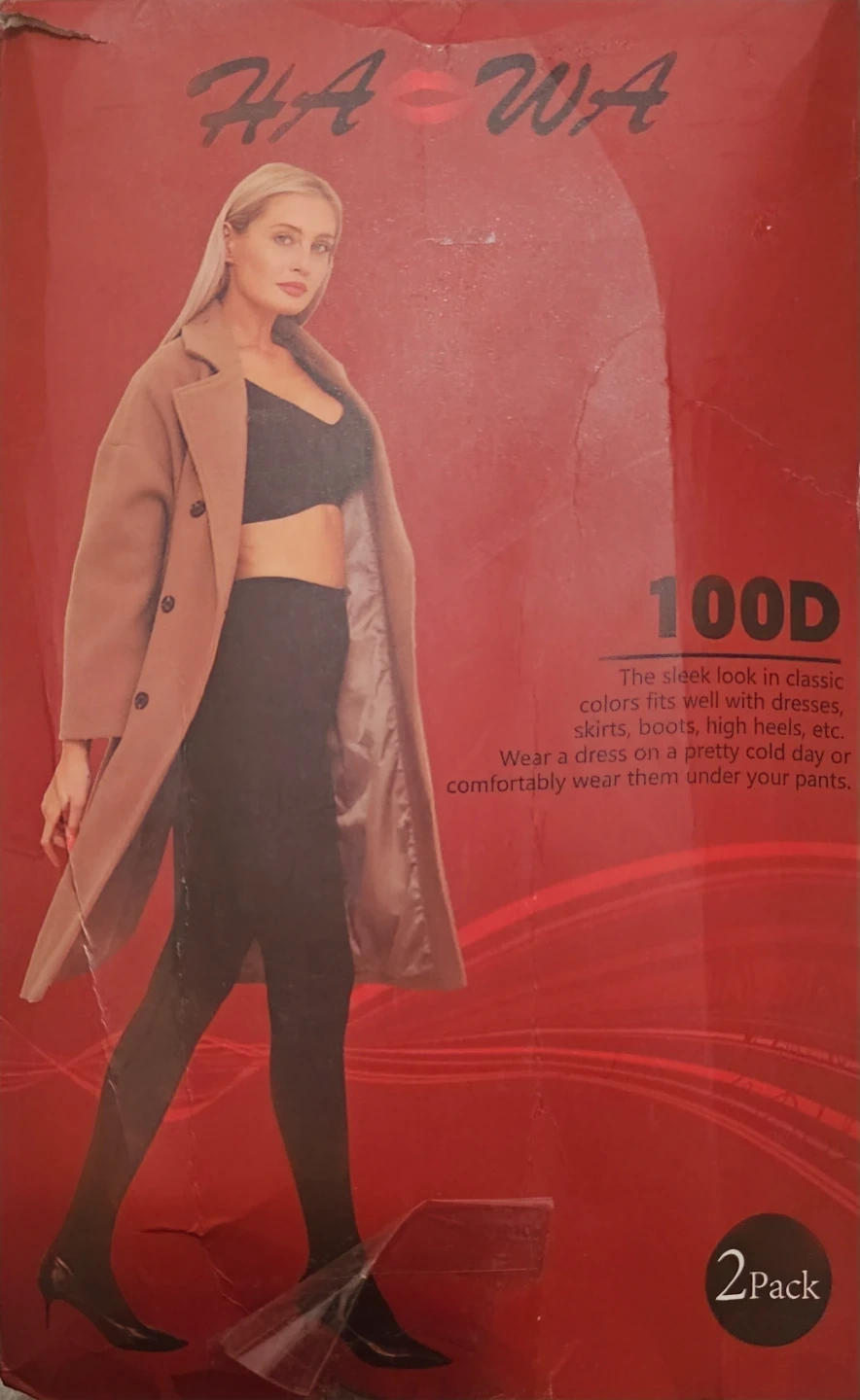 These HA~WA women's opaque tights are lined with soft fleece for warmth. They offer shaping and tummy control with an elastic waistband. Made with 97% Polyester and 3% Spandex.