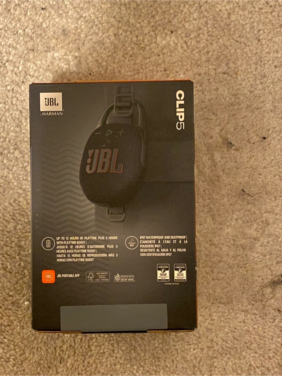 It's a JBL CLIP 5 portable Bluetooth speaker. It's waterproof and dustproof with IP67 rating. Offers up to 12 hours of playtime. BRAND NEW. FACTORY SEALED INSIDE OF THE BOX.