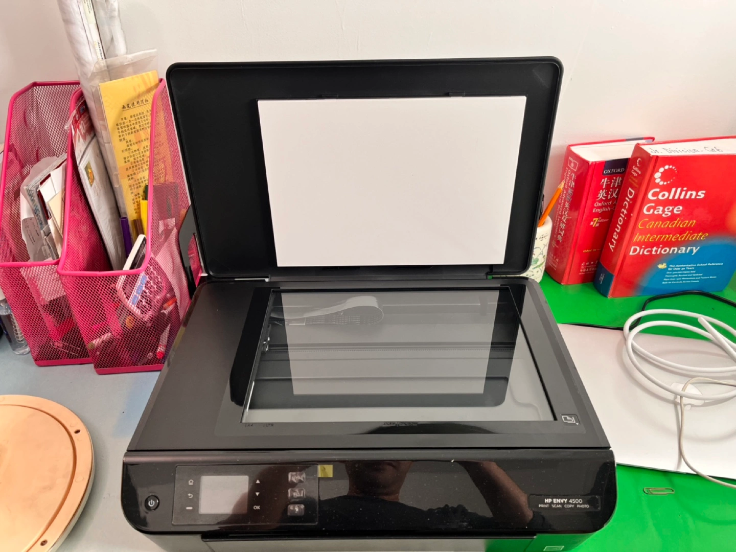 All-in-one printer, scans, copies, and prints. Good condition, minor wear. Includes power cord. Wireless.