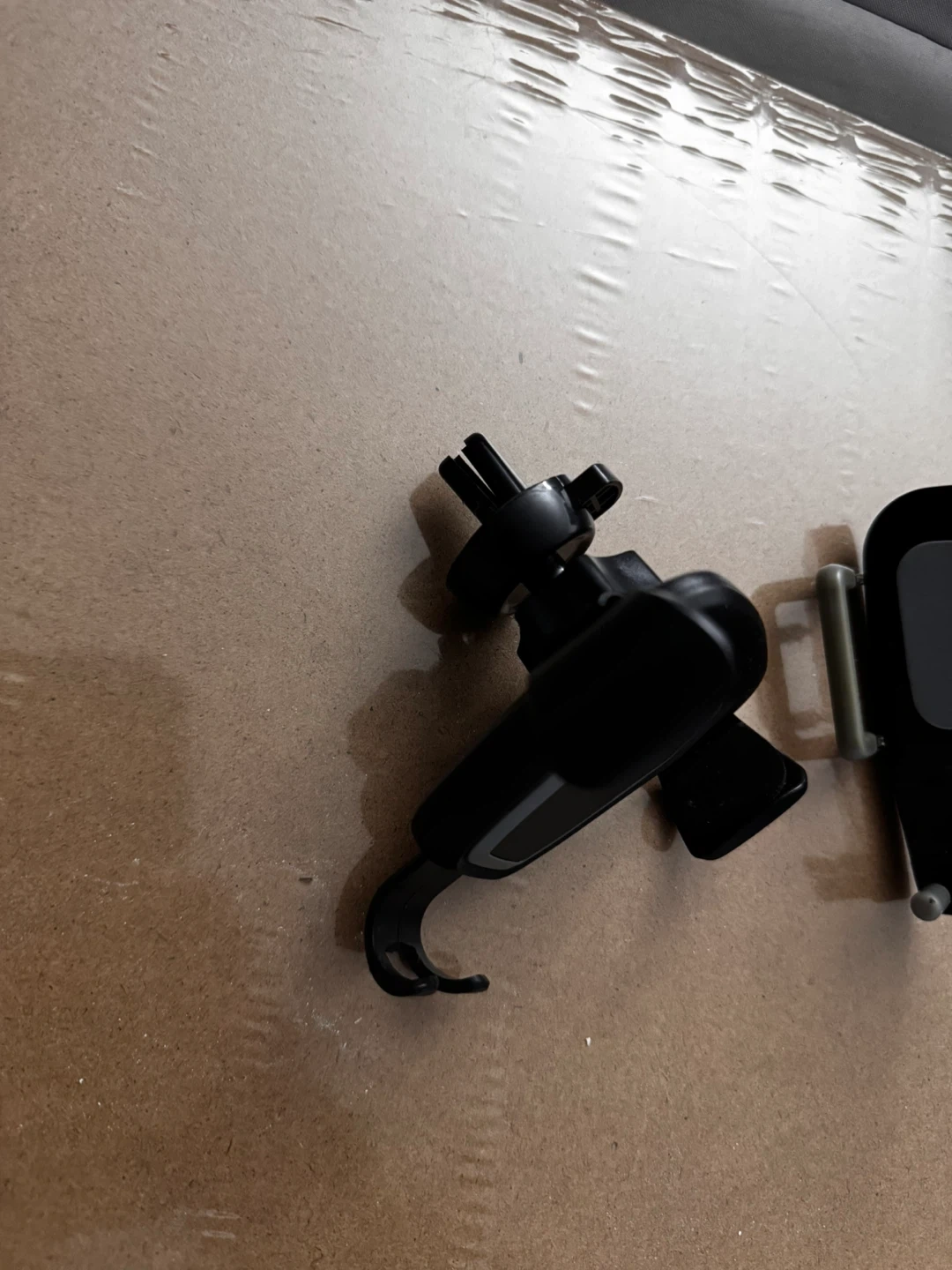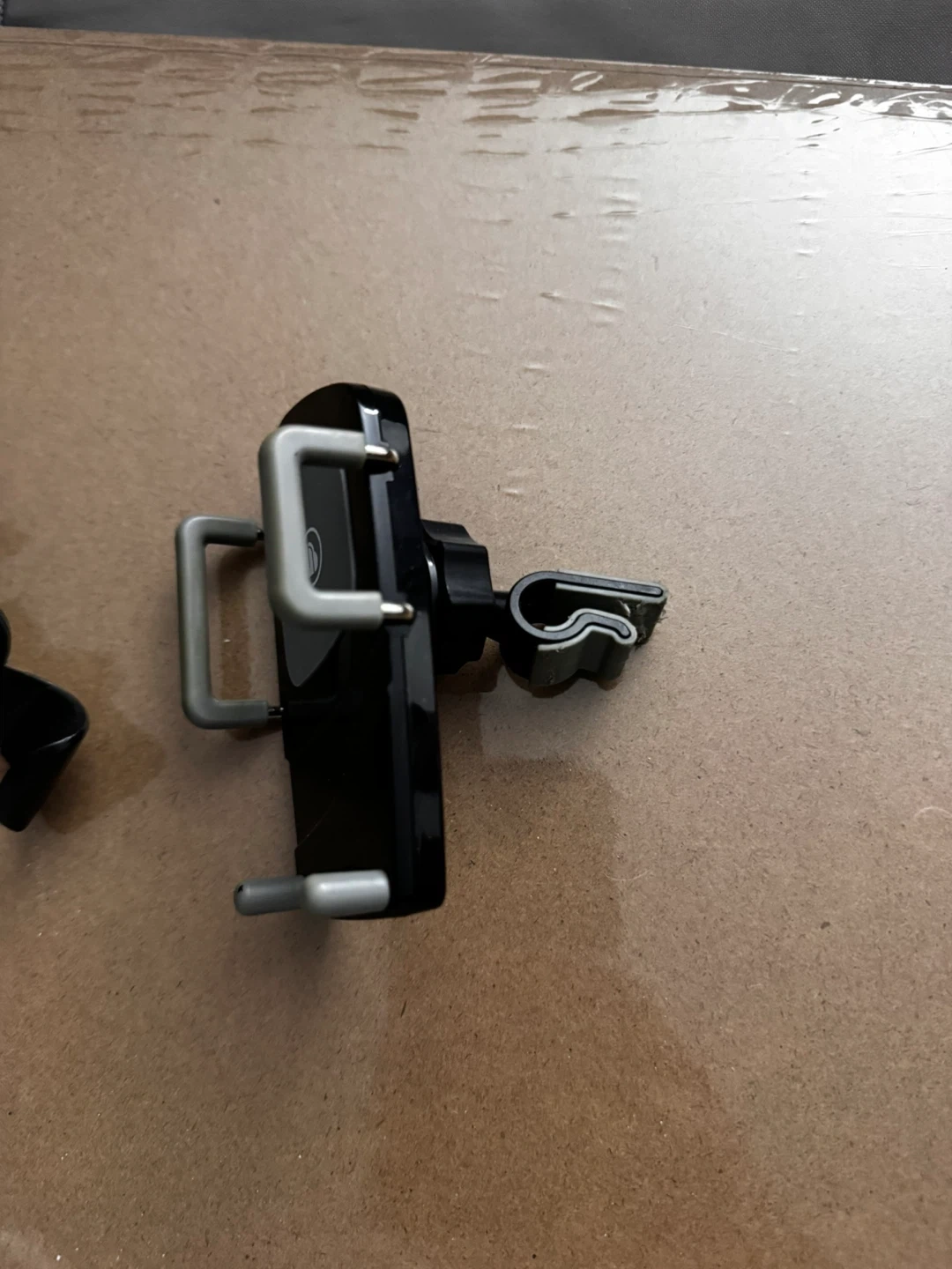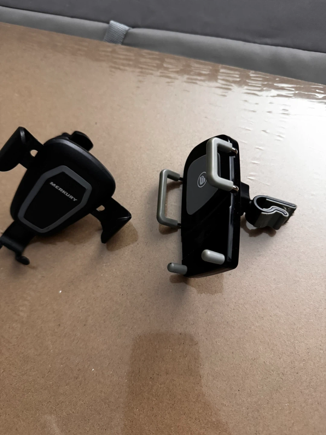 This is a black Merkury car mount for phones. It has adjustable arms to securely hold your device while driving. The mount attaches to your car's vent.