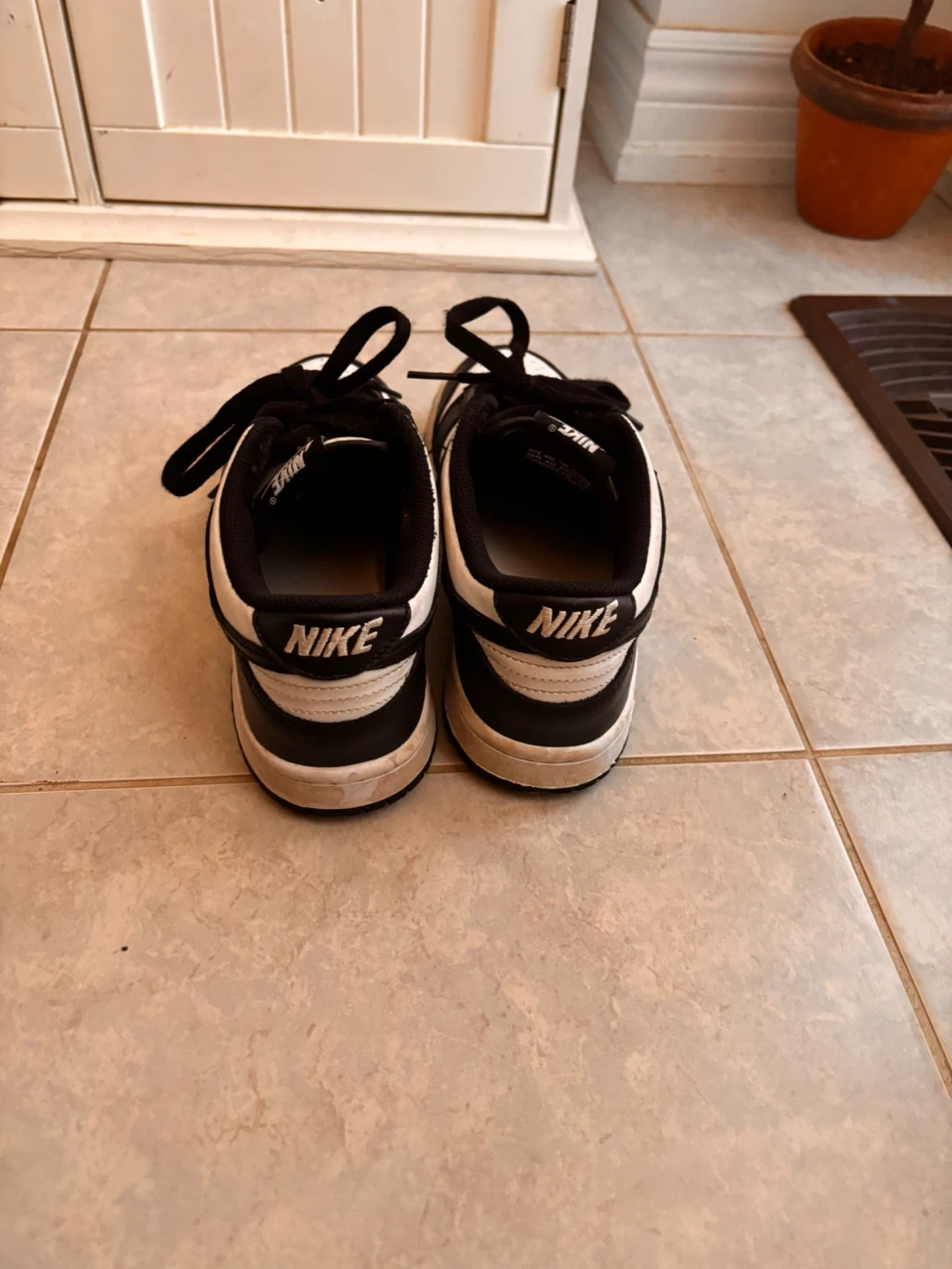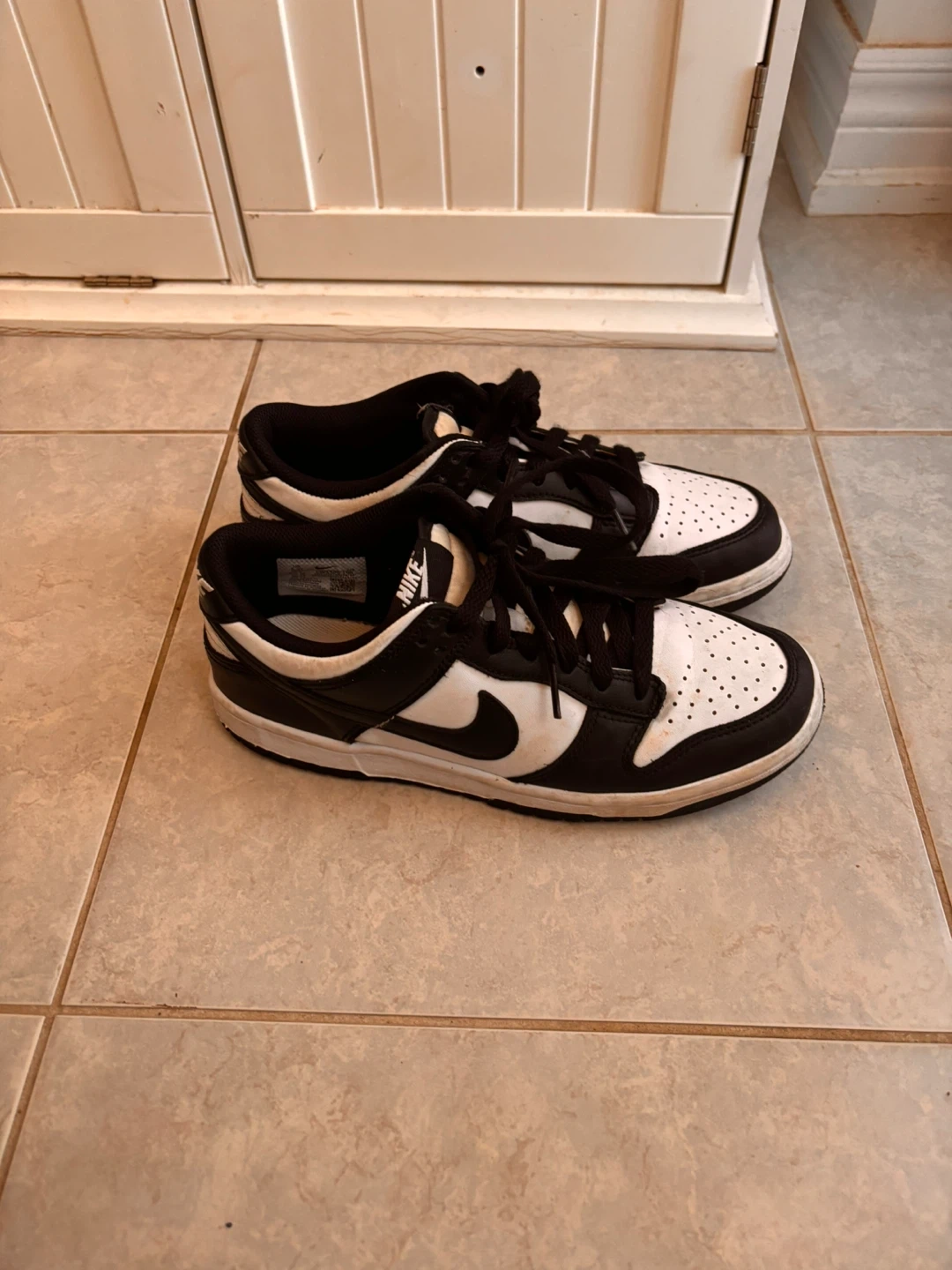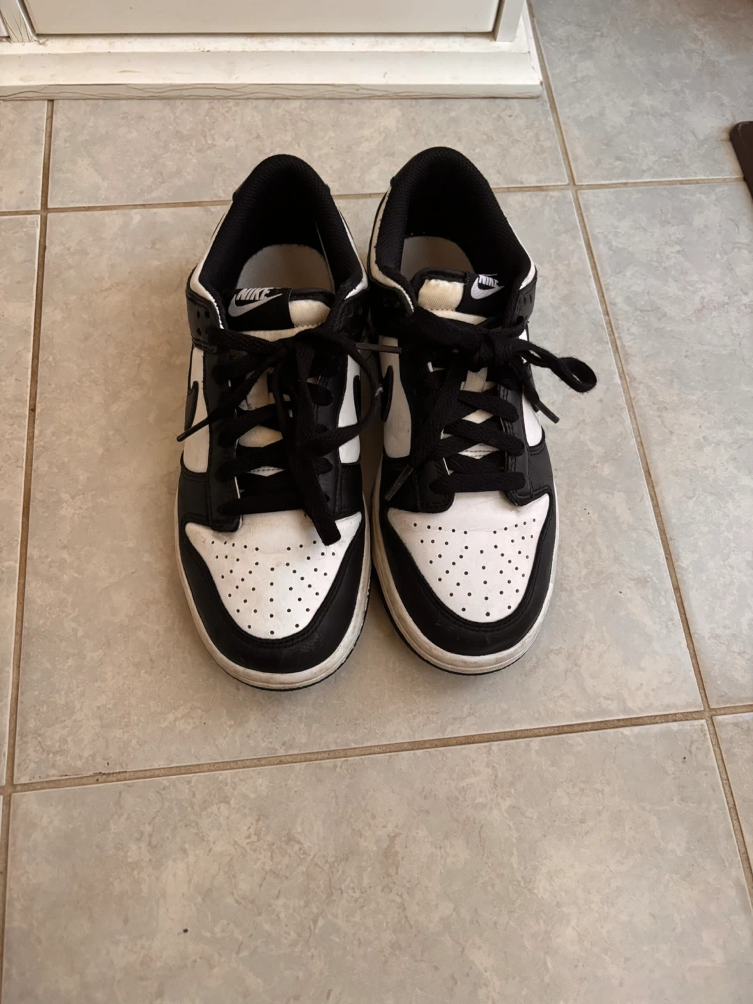 Selling a pair of Nike Dunk Low shoes in a classic black and white colourway. They show some signs of wear, as you can see in the photos, but still have lots of life left in them! Great for everyday wear size 5.5 US.