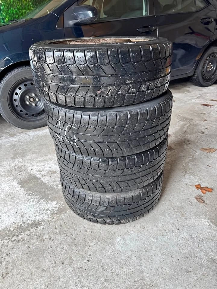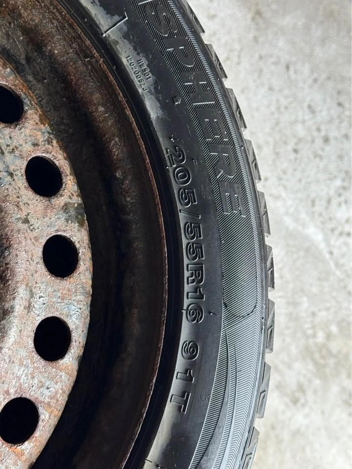 Selling a set of 205/55R16 winter tires mounted on steel rims.