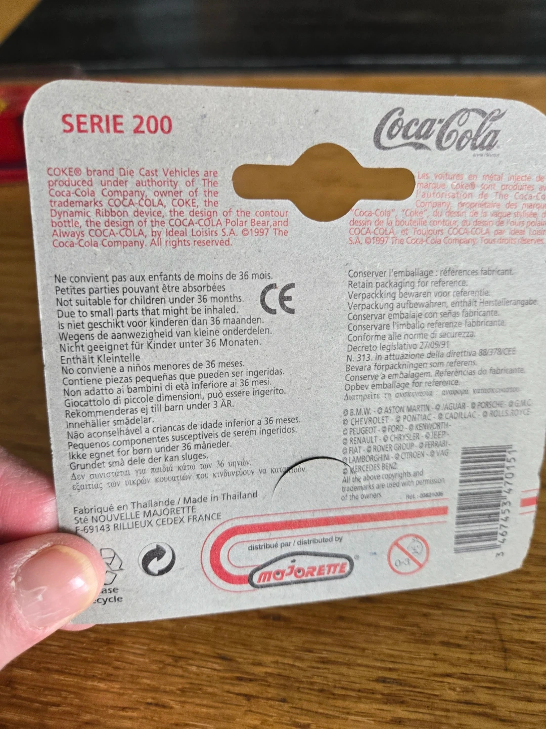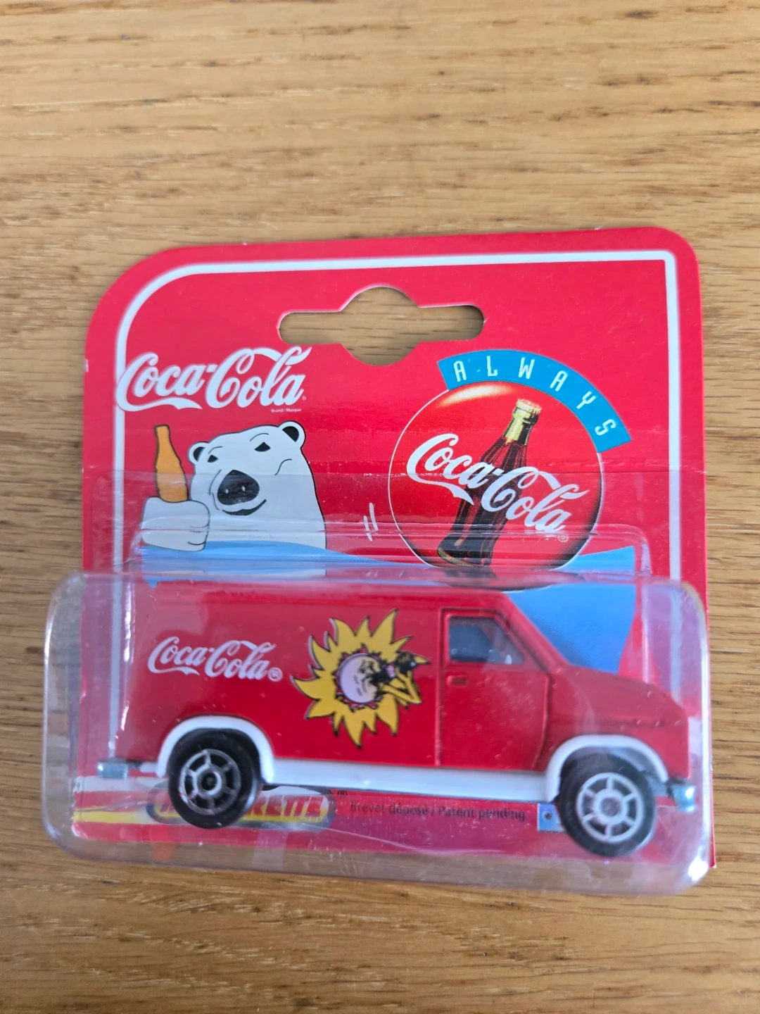 This is a Coca-Cola branded die-cast van toy. It features classic Coca-Cola graphics including the polar bear and the "Always Coca-Cola" slogan. This collectible toy comes in its original packaging.