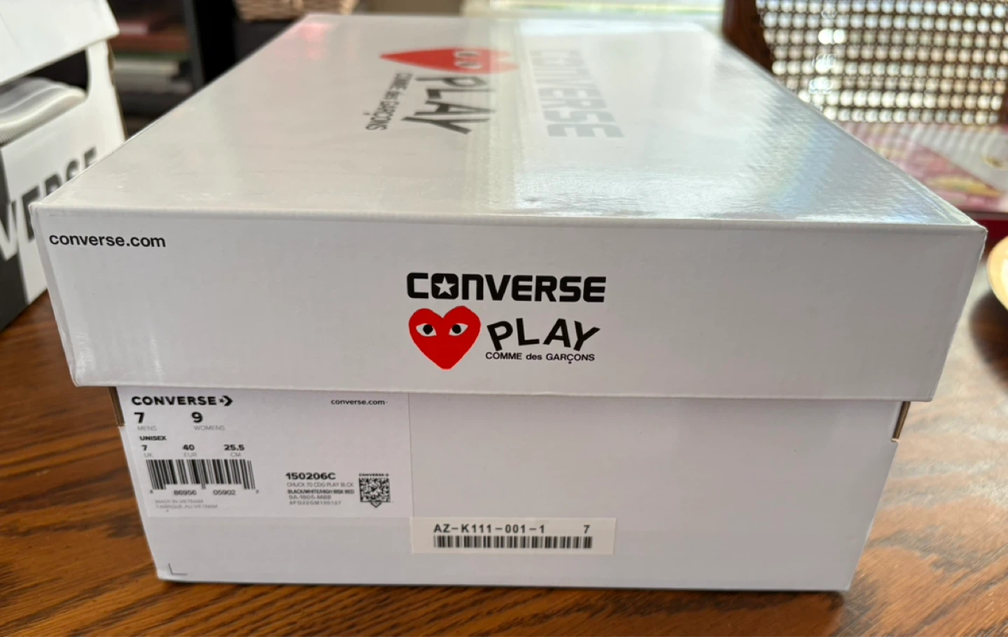 These iconic Converse sneakers feature the signature PLAY heart logo. They're made with a durable canvas upper and classic rubber sole. Perfect for adding a stylish touch to any casual outfit! Mens 7 or Women’s 9. Price is firm. 😊