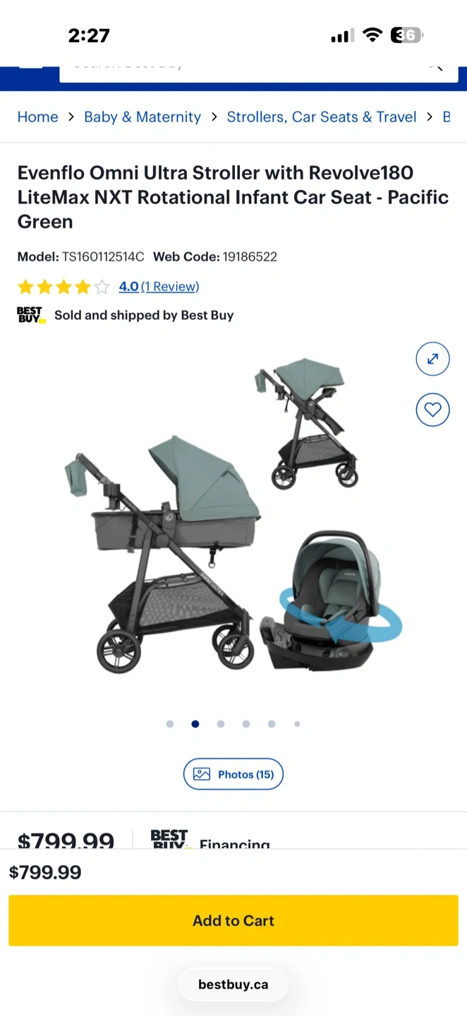 This is the Evenflo Omni Ultra Stroller with the LiteMax NXT Rotational Infant Car Seat. The stroller features a rotatable seat. The car seat also rotates for easier access. It's designed for infants and toddlers.