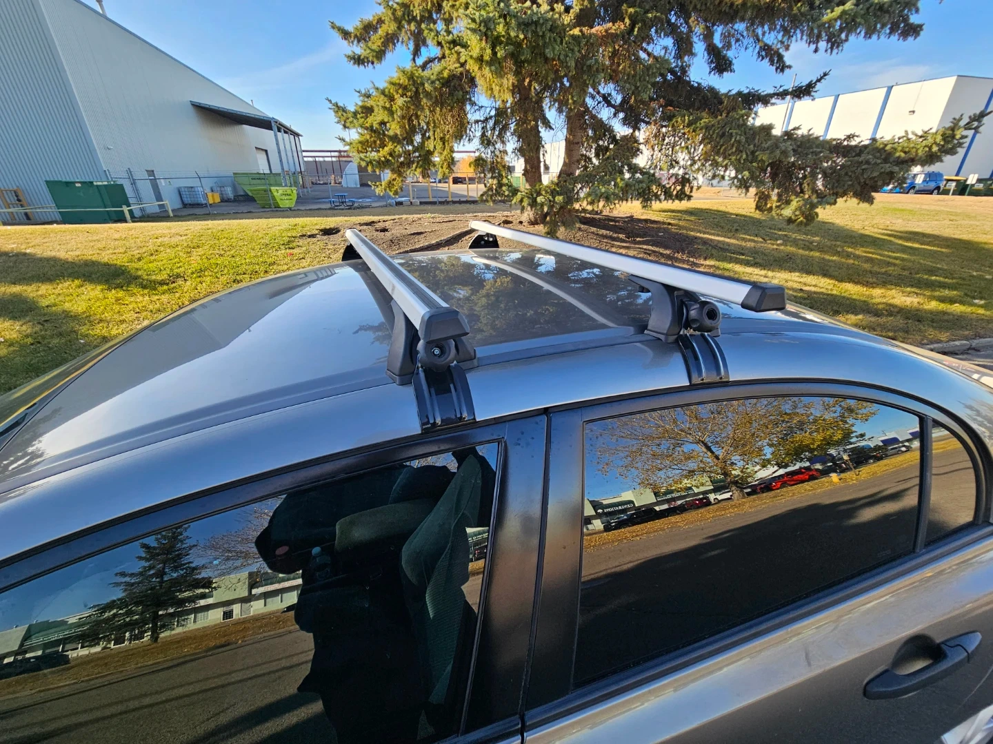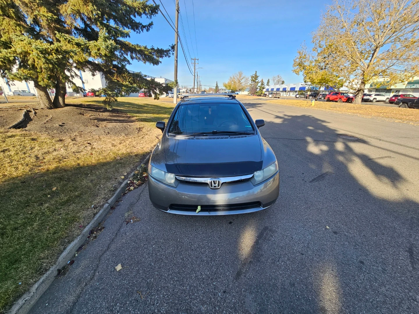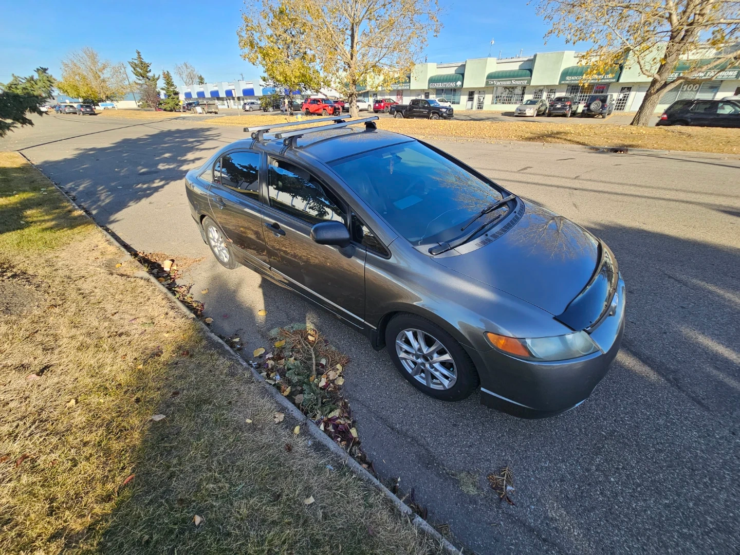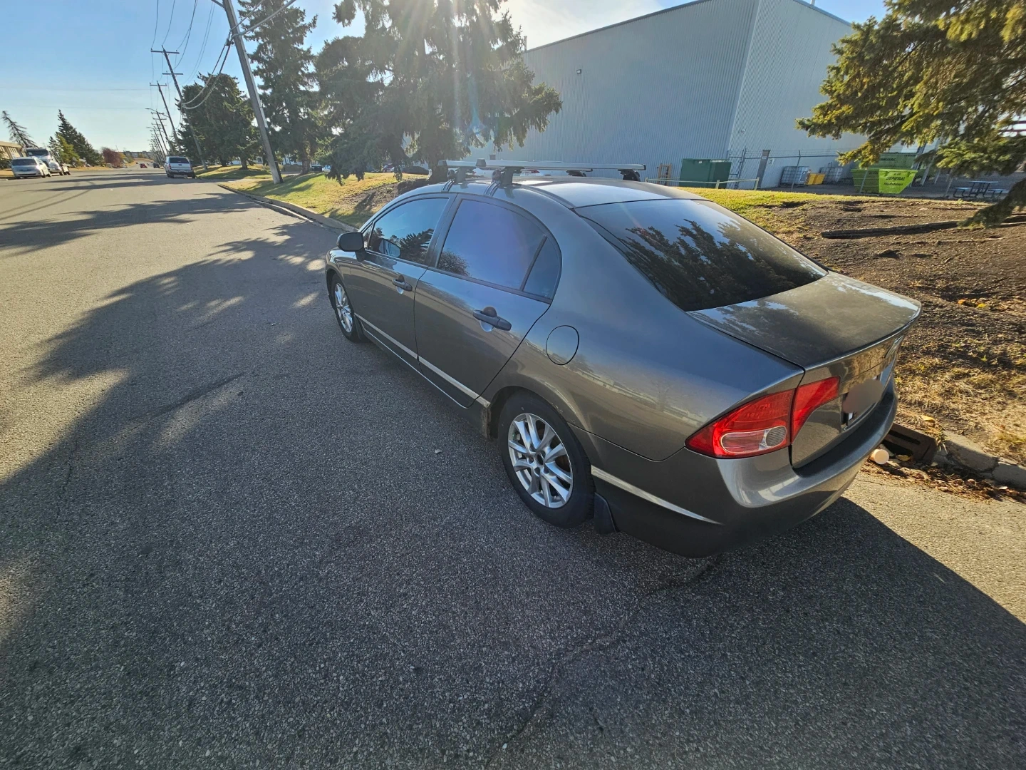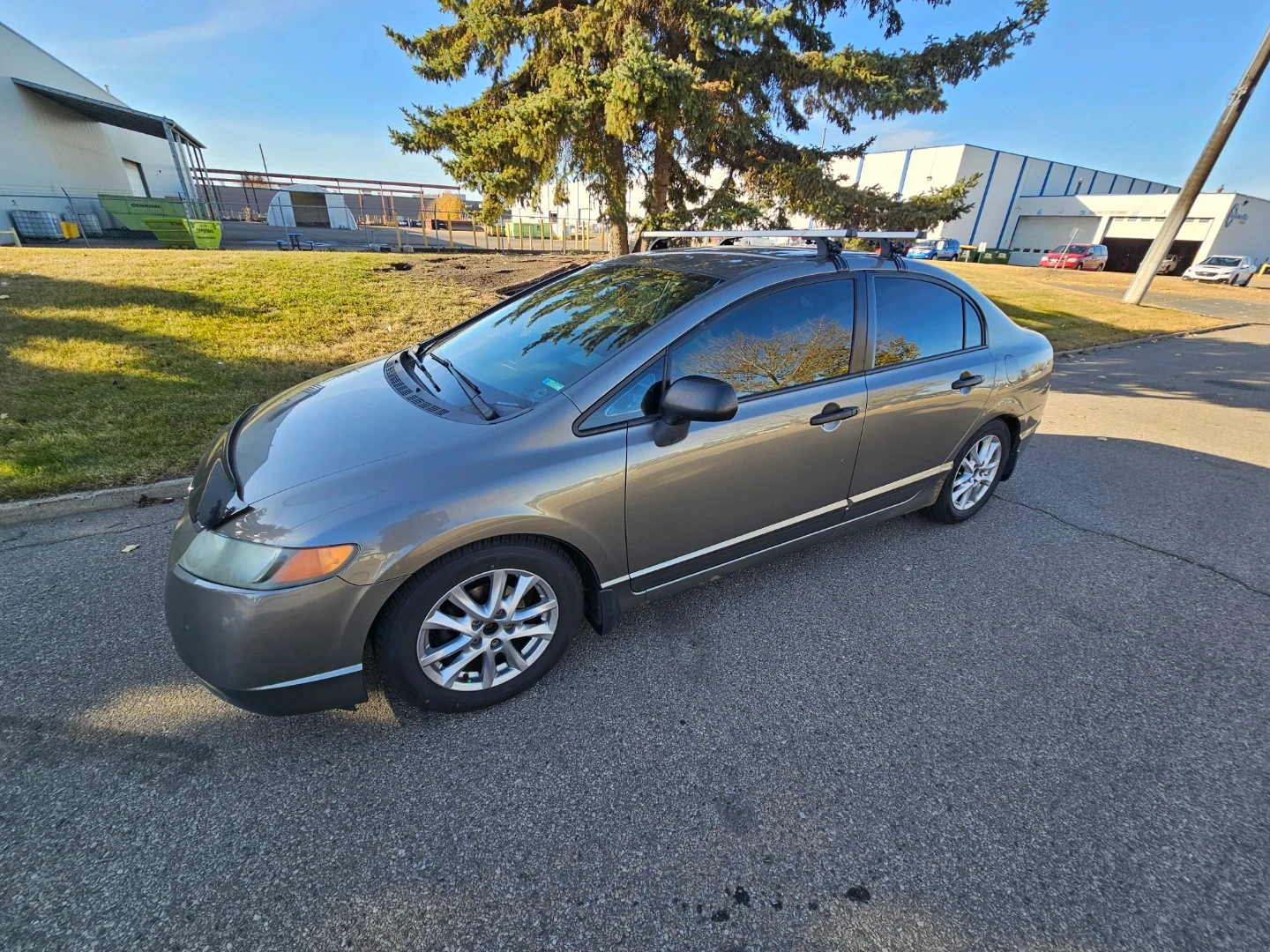 A pre-owned Honda Civic sedan, grey in colour, is up for grabs! It comes equipped with a roof rack for extra cargo space. This model features tinted windows. It's a reliable ride, perfect for daily commutes and weekend adventures. A great option for anyone needing dependable transportation!