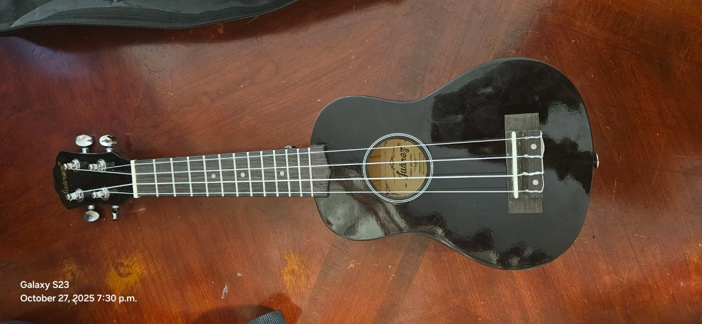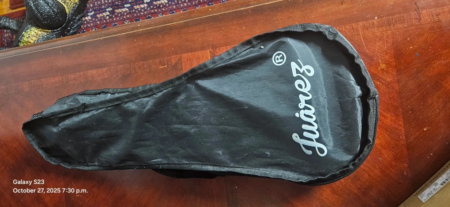 54Selling a Juarez ukulele in black! It comes with a case to keep it safe and sound. Perfect for beginners or anyone looking to add a fun instrument to their collection. Ready for a new home!