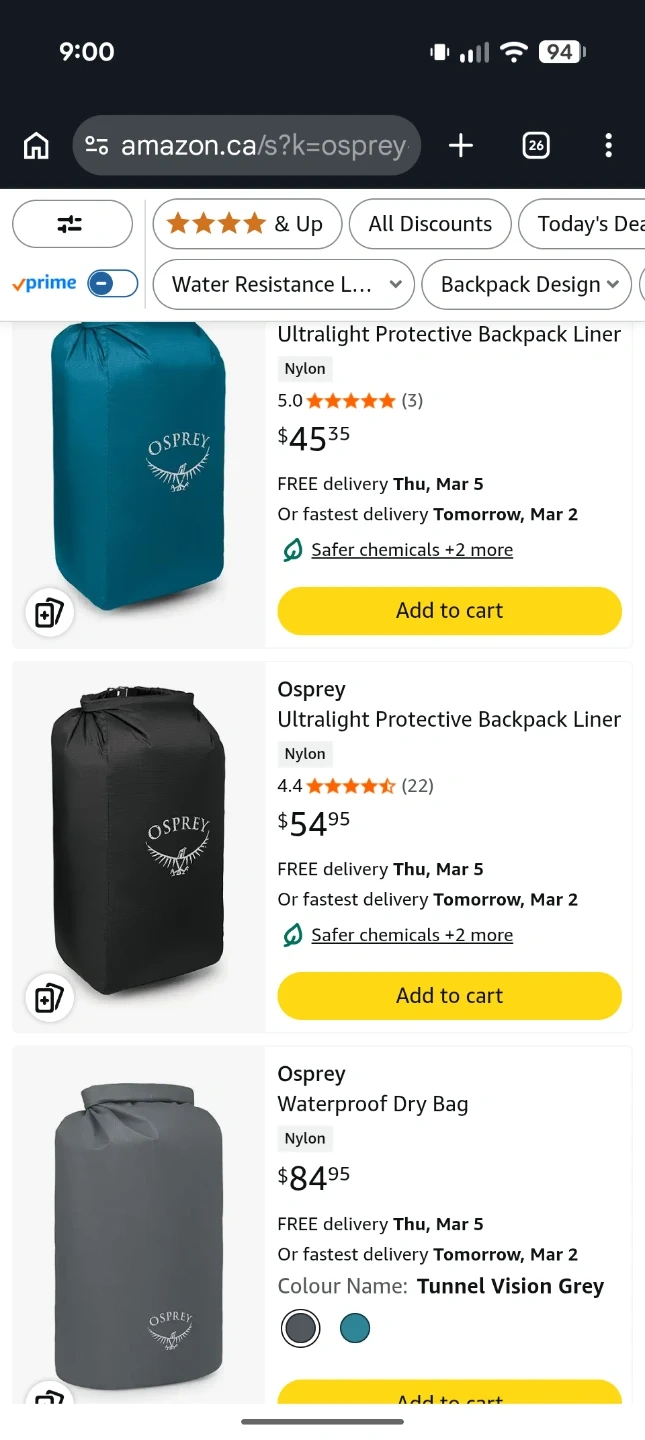 Osprey Aura AG 50 Women's Backpack and waterproof liner