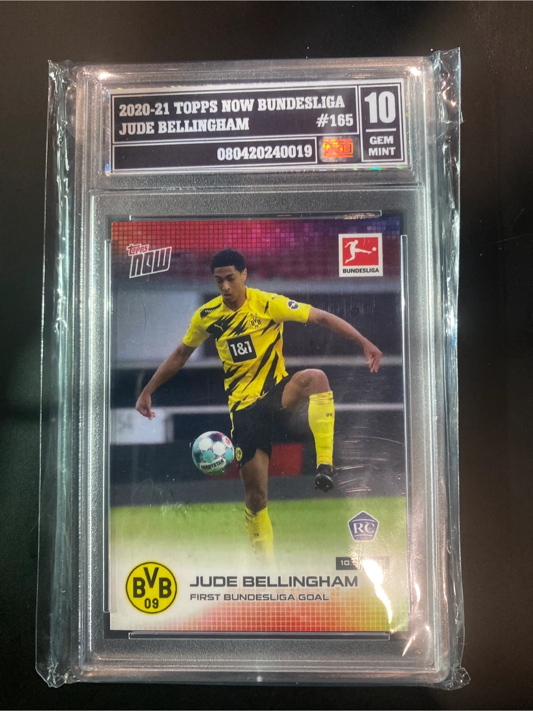 21Selling a 2020-21 Topps Now Bundesliga card featuring Jude Bellingham, card number #165. It's graded as GEM MINT 10. A great addition for any soccer card collector!