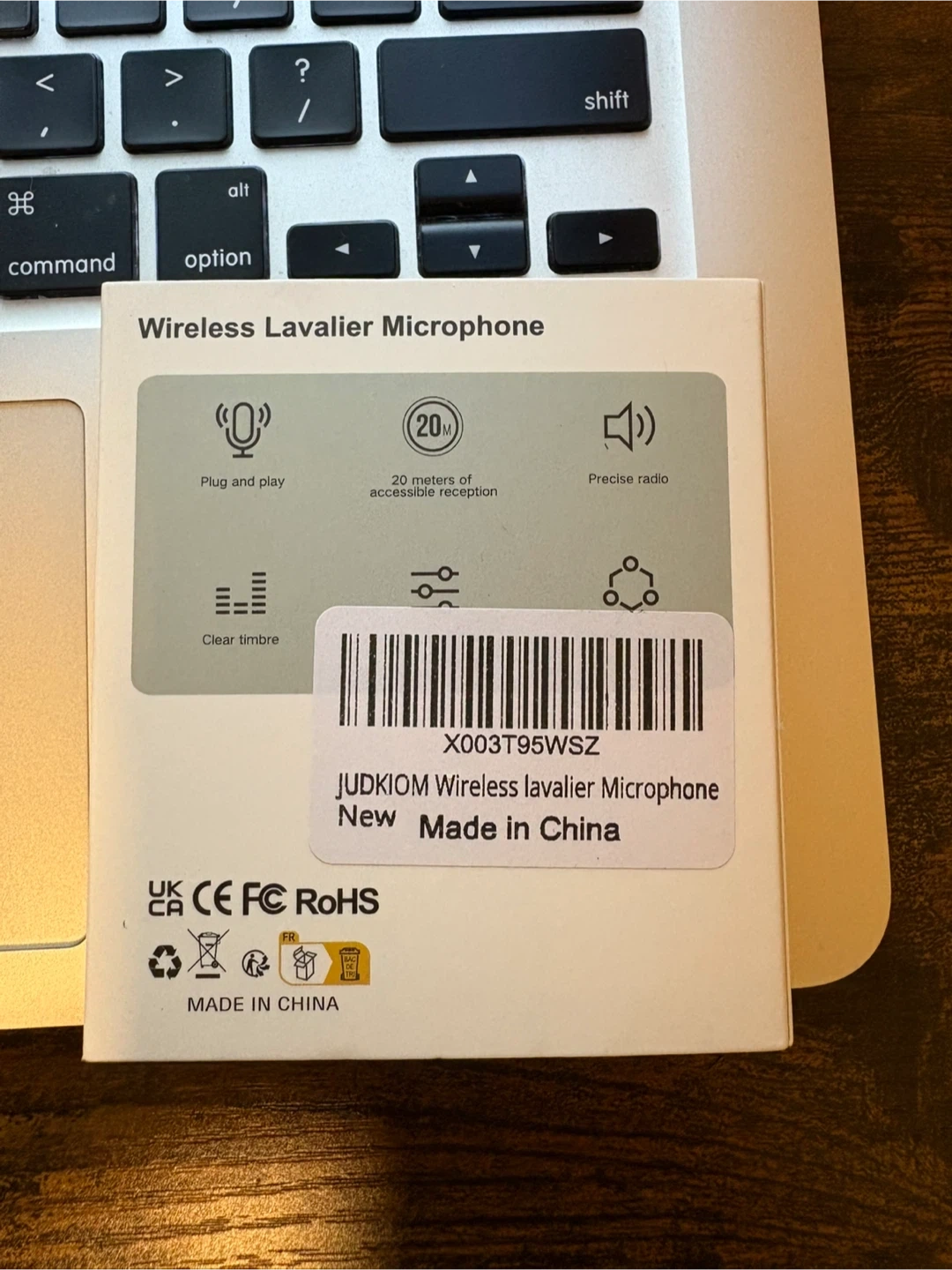 65Selling a like-new JUDKIOM Wireless Lavalier Microphone. Still in its original packaging and includes all components. Ordered from Amazon but never used, just opened but never unpacked from its case. - Plug and play - 20 meters of accessible reception - Precise radio - Clear timbre