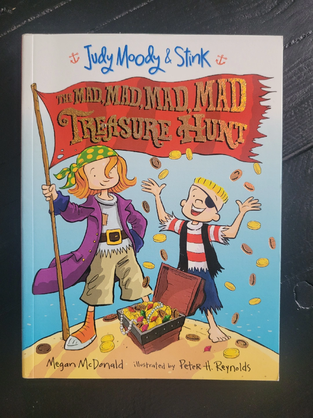 Selling the book Judy Moody & Stink: The Mad, Mad, Mad, Mad Treasure Hunt by Megan McDonald and illustrated by Peter H Reynolds! It's a fun read for ages 6-9