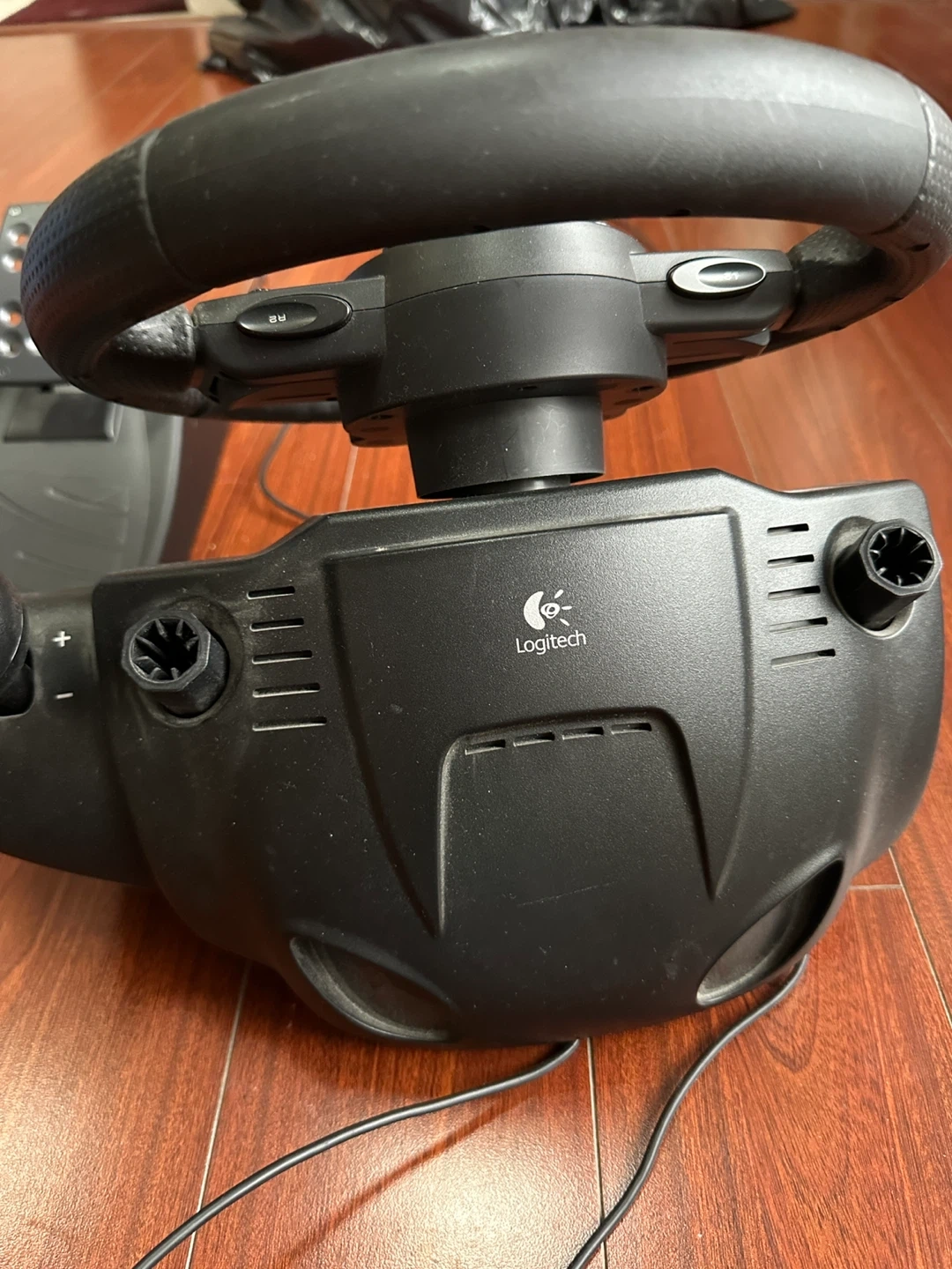 This Logitech Driving Force steering wheel and pedal set is designed for immersive racing simulation. It's made of durable plastic and features a comfortable grip. Great for enhancing your gaming experience!