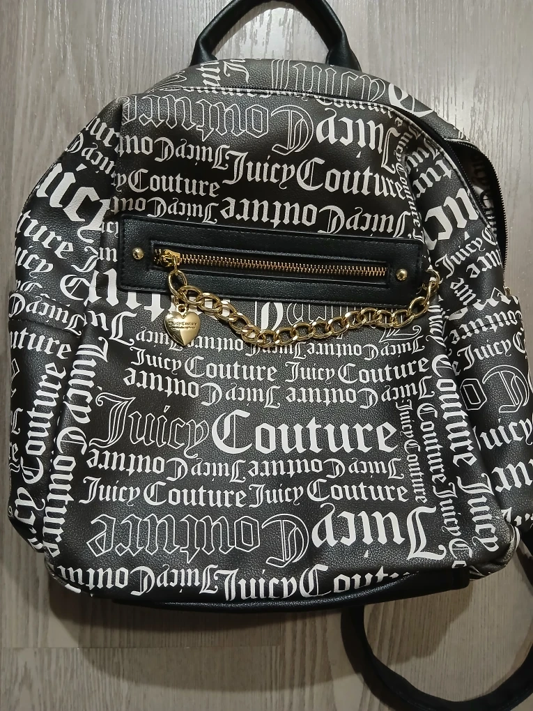 15Selling a cute Juicy Couture backpack! It features the iconic Juicy Couture logo all over in black and white. It has a front pocket with a zipper and a gold chain detail. Perfect for adding a bit of sparkle to your day!