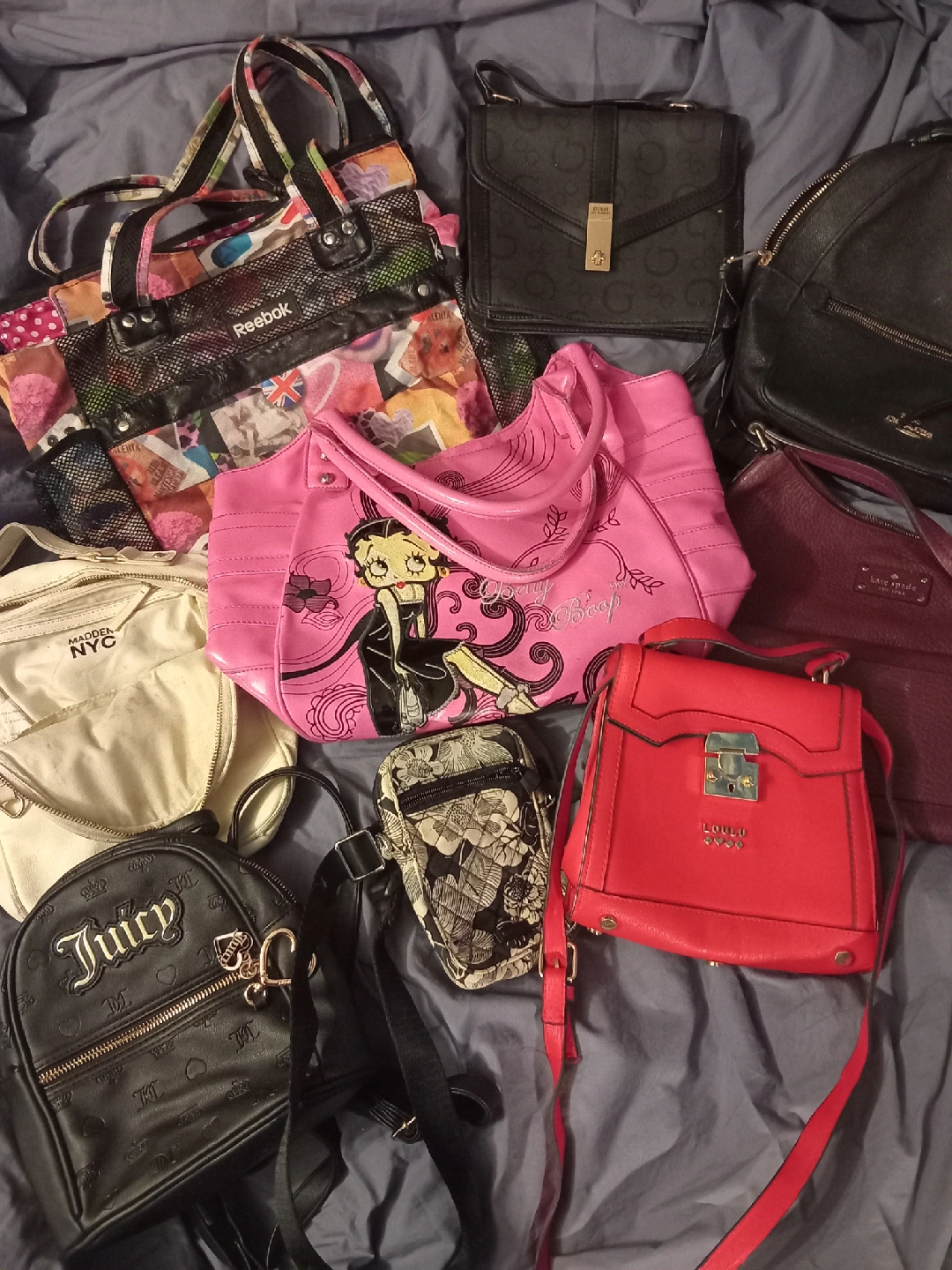 30Selling a cute Juicy Couture mini backpack in black! It's in good condition and perfect for carrying small essentials. Also available is a Madden NYC white backpack. prices on pictures