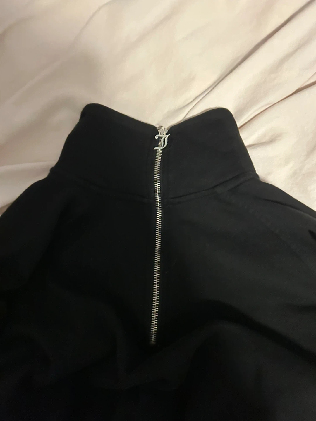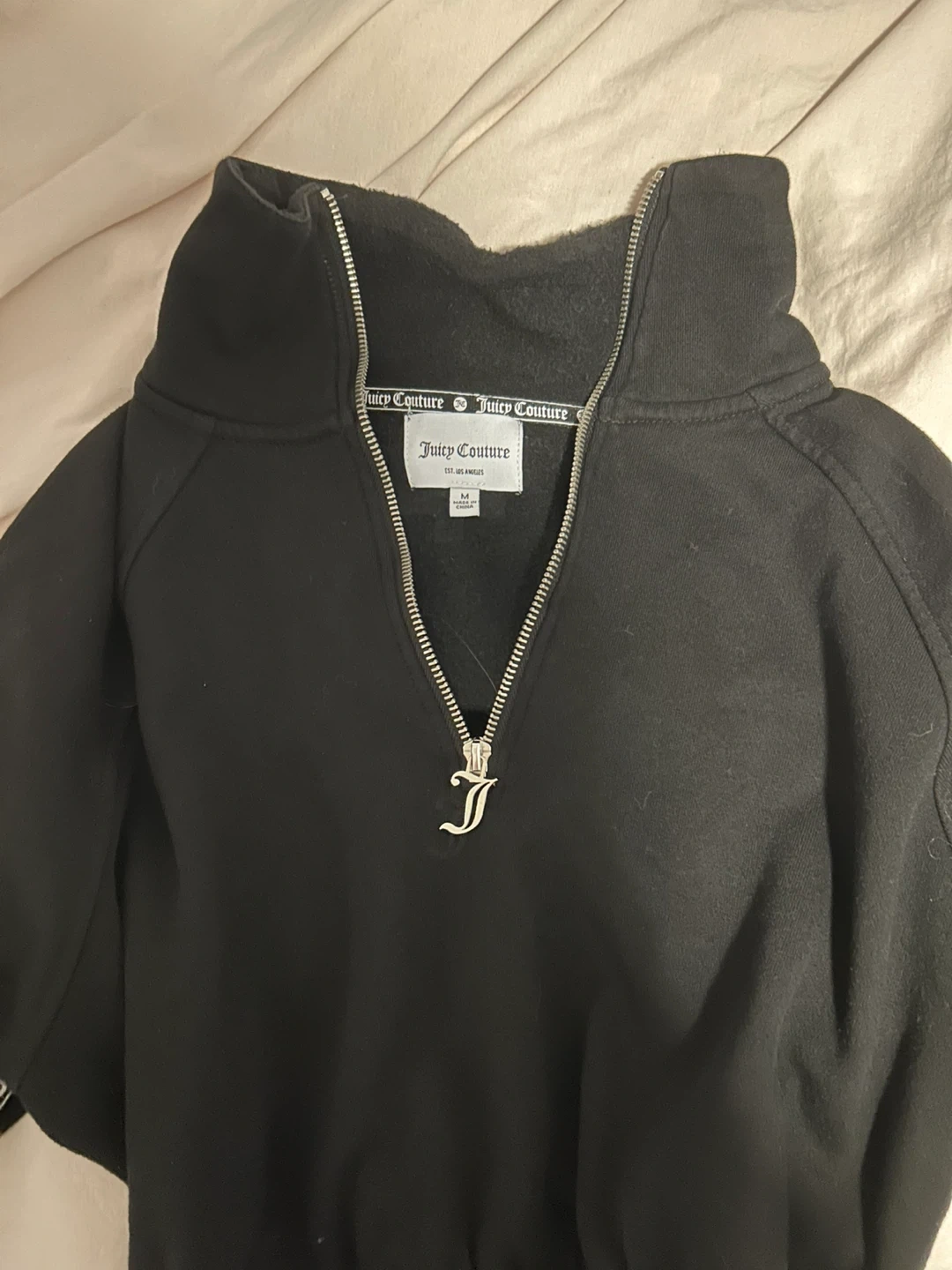 23Juicy Couture black cropped pullover in size medium, does fit slightly bigger and is a turtle neck. It features the iconic 'J' zipper. Comes from a smoke free household. Pay in cash please, and price can be negotiated.