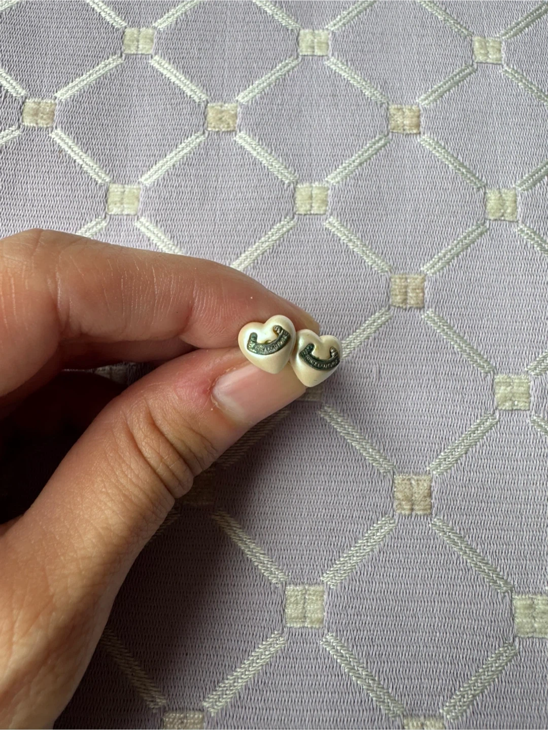 15These are a pair of Juicy Couture heart-shaped pearl earrings. They're super cute and would be a great addition to any outfit!