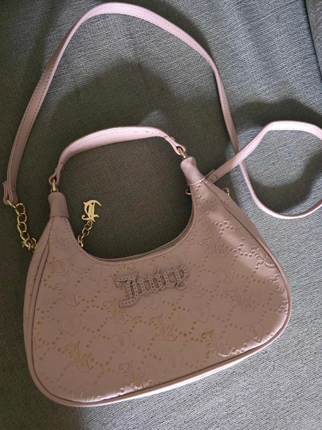10Selling a cute Juicy Couture shoulder bag in a lovely pink colour! It's in great condition and perfect for adding a touch of Y2K style to your outfit. The interior lining features the Juicy Couture logo. It's a stylish and trendy accessory!