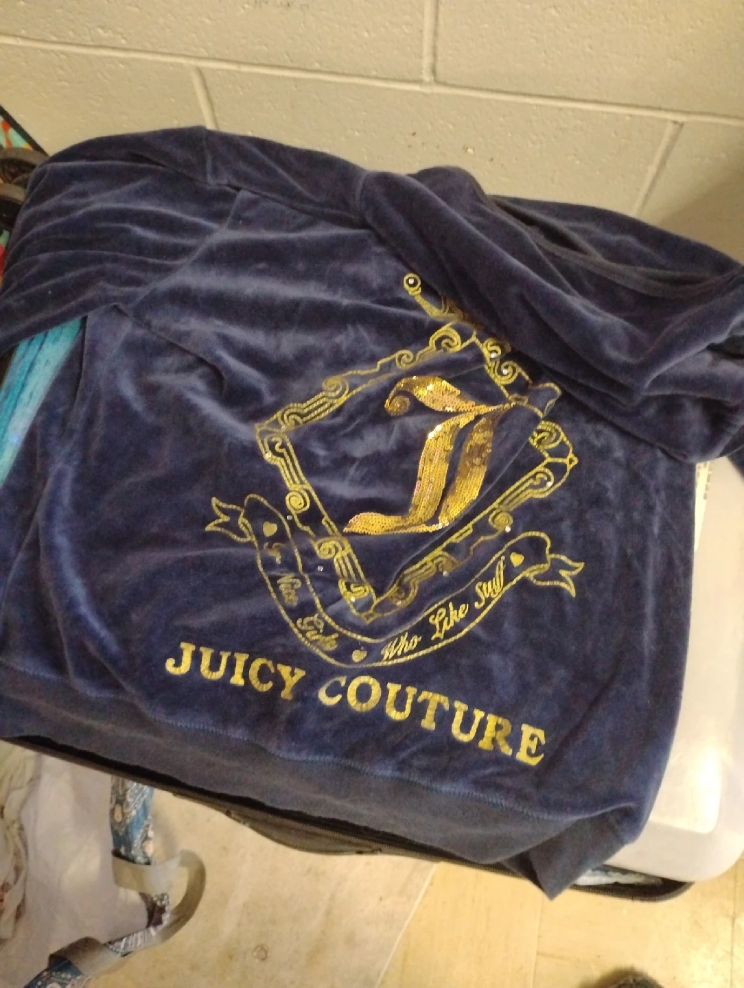 10Cozy Juicy Couture velour hoodie in a lovely blue colour. The hoodie features the classic Juicy Couture logo with gold detailing
