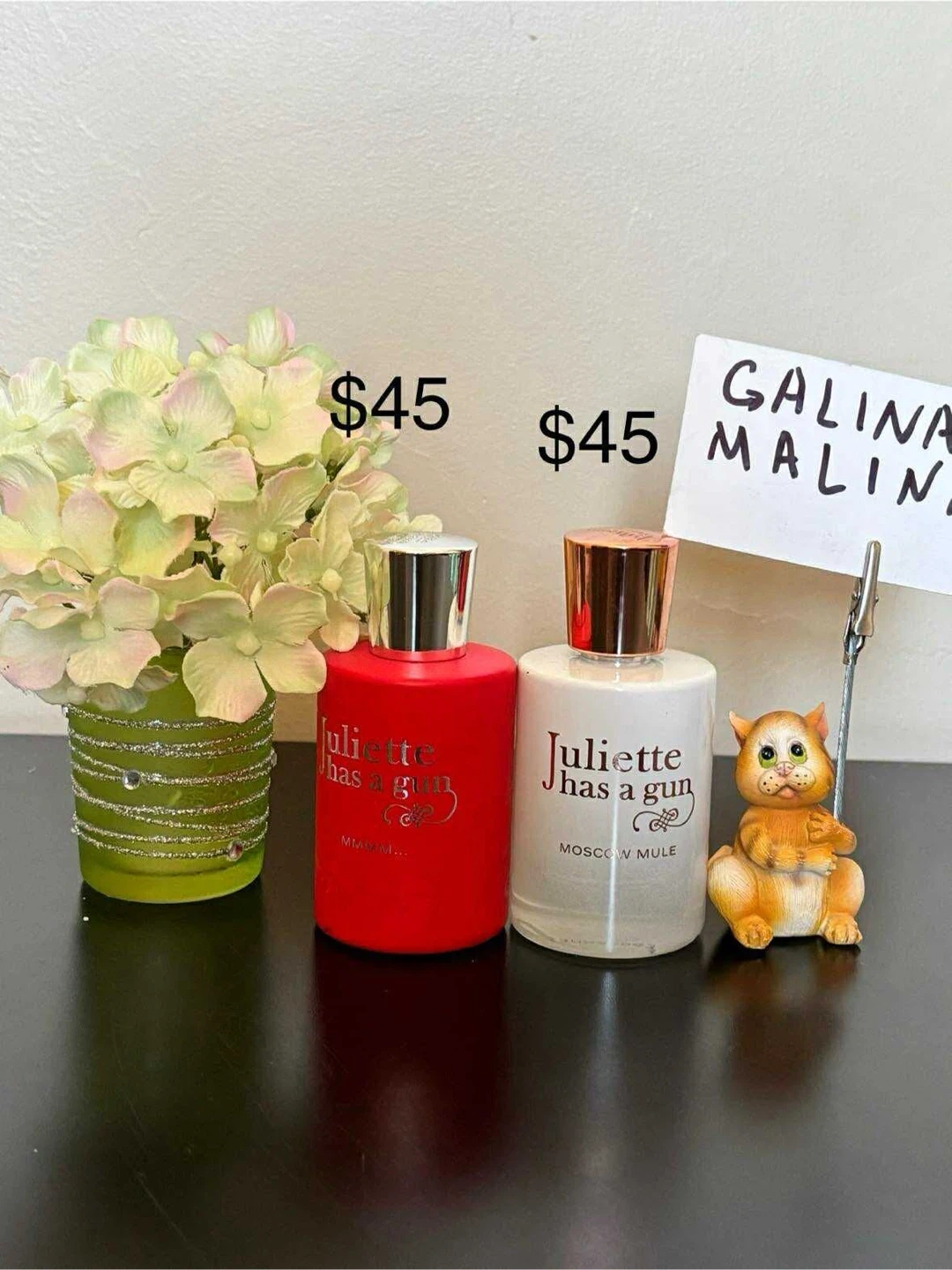 10Selling two bottles of Juliette Has A Gun perfume! One is 'Mmm...' and the other is 'Moscow Mule'. Asking $45 each.
