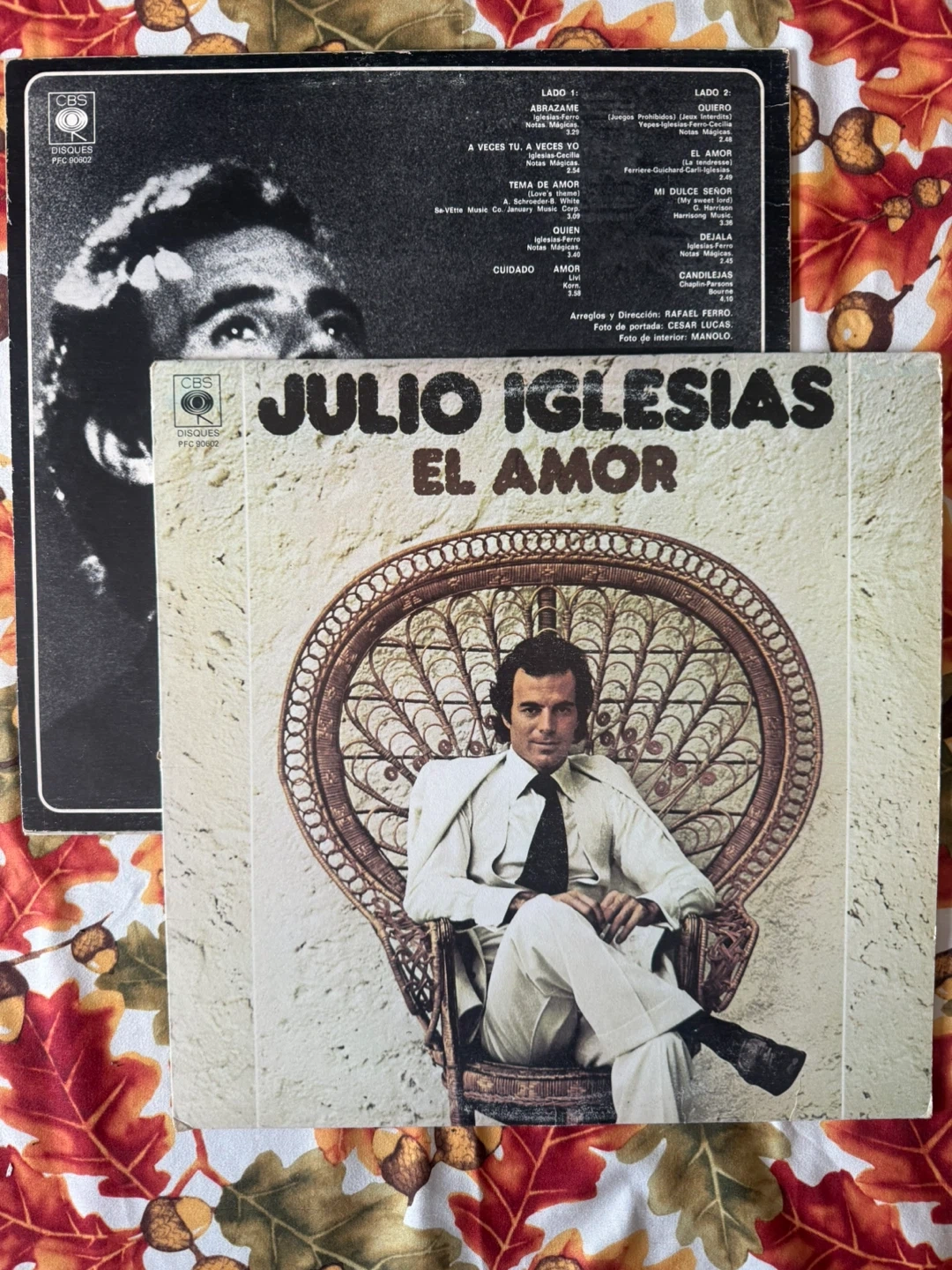 Selling a collection of Julio Iglesias vinyl records. Includes albums such as '1100 Bel Air Place', 'America', 'Et L'Amour créa la Femme', 'A Mexico', and 'Libra'. Great for any fan of classic music! Pre-owned single record - $20 each double record - $30 each