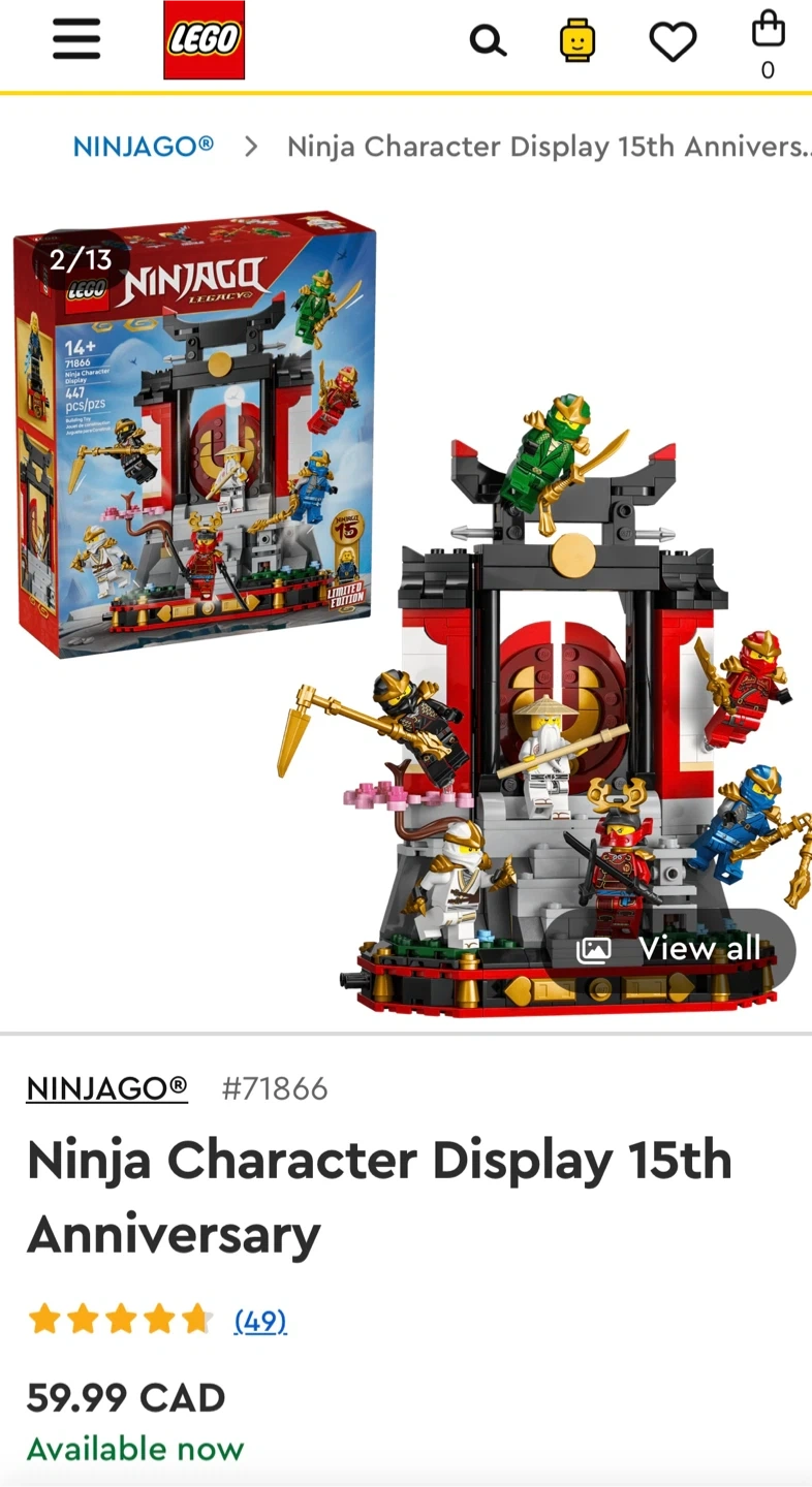 This is the LEGO Ninjago Ninja Character Display 15th Anniversary set. It features the 15th Anniversary Ninjago display with multiple characters. Includes original box and all components.