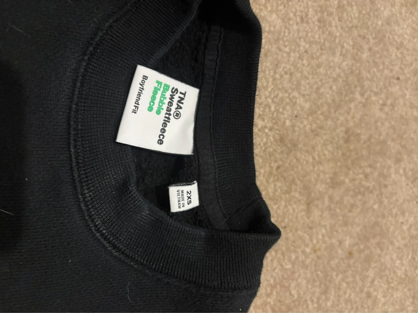 Buy & SellTNA Sweatfleece Bubble Fleece Crewneck 2XS BlackTNA Sweatfleece Bubble Fleece Crewneck 2XS Black$20This is a TNA black crewneck sweatshirt. . Size is 2XS.ConditionLike newSize2xsBrandTNAWHERE TO MEETSherwood ParkView MapSELLERverifiedKariSherwood Park600 reviews0 chats·0 favorites·3 viewsSEND CHAT TO SELLERHi Kari! I’m interested in your listing.Hi Kari! I’m interested in your listing.Get the Karrot app to chatSign In to chat