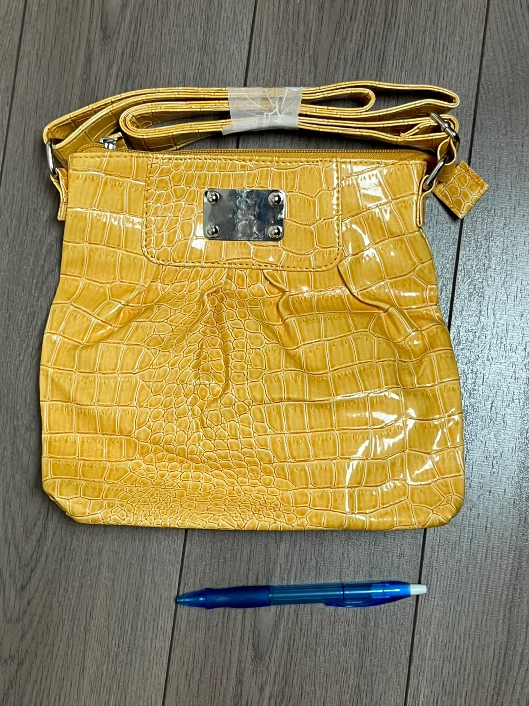 Looking to sell this stylish yellow crossbody bag! It features a unique croc-embossed pattern and a convenient crossbody strap. Perfect for adding a pop of colour to any outfit!