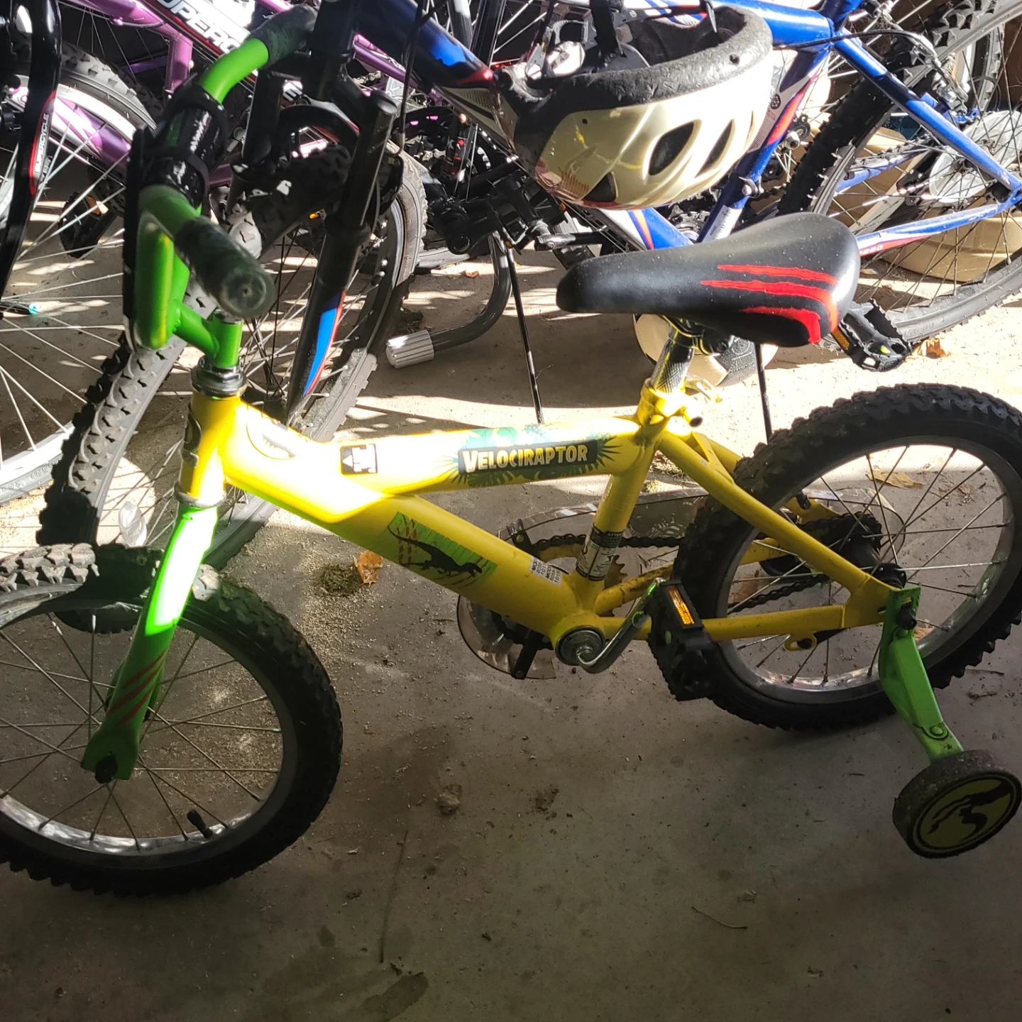 18Selling a fun Jurassic World Velociraptor kids' bike! It's yellow and green and has a cool dinosaur theme. Perfect for a young adventurer learning to ride. EUC boy's 16 inch jurassic park bike, never stored outside, comes from a smoke free home. Price is firm CASH ONLY NO ETRANSFERS ACCEPTED. DO NOT ASK IF AVAILABLE IF AD IS STILL UP IT'S AVAILABLE