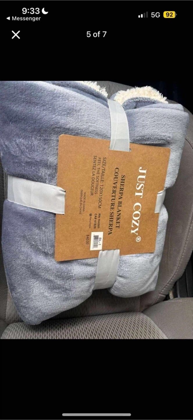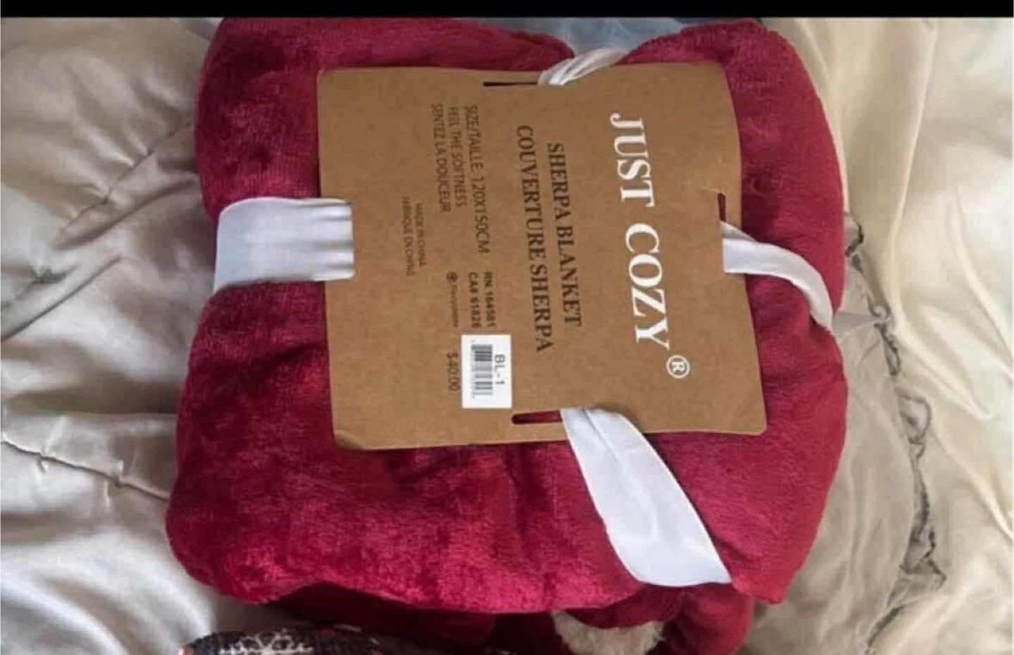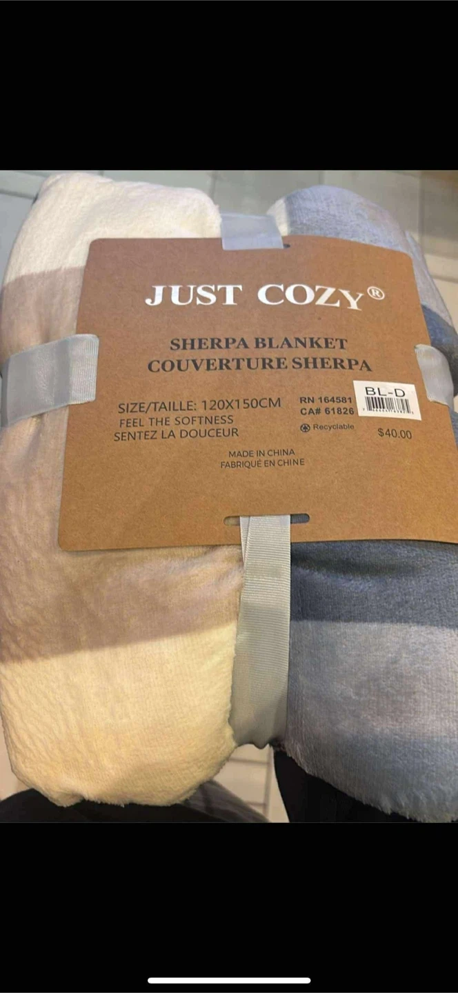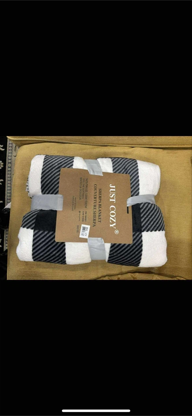 74Selling a new Just Cozy Sherpa Blanket! It's super soft and cozy, perfect for snuggling up on the couch. The size is 120x150cm. Feel the softness!